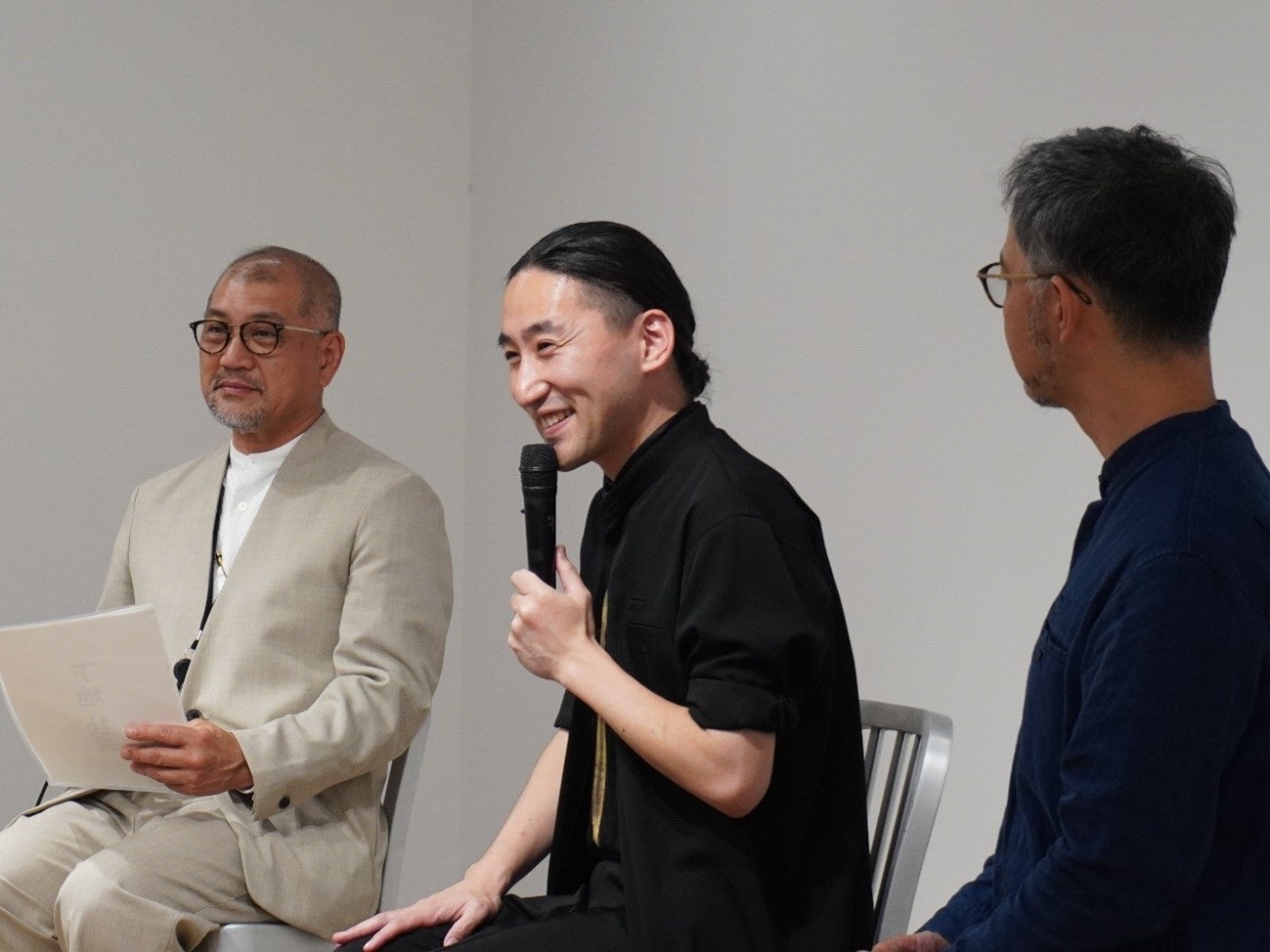 上映後には下地の司会で中里氏、関根監督とのトークショーが行われ、本作を作ろうと思ったきっかけや大量生産・大量消費システムをどう考えるか、それでもパリコレへの出品をつづける理由、そして世界で2番目の環境汚染産業であるファッション業界に対する思いなどをお聞きしました。最後に、お2人に受賞のお祝いの花束を贈呈し、中里氏からは「この映画を通じて世界中の人々が、今一度、衣服やファッションに意識を向け、そして考える機会が生まれてくれたらと願っています。この映画祭を通じて世界に広がっていくことを想像するとワクワクします。心から感謝しております。」、関根監督からは「アメリカの三大映画祭であるトライベッカ映画祭で日本の映画作品が受賞できたことを非常に光栄に思っていますし、これがより多くの人々の意識変化につながればと願っています。」というコメントを頂戴いたしました。