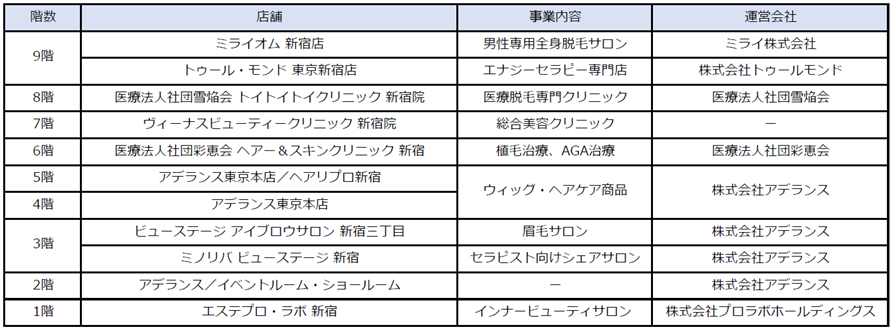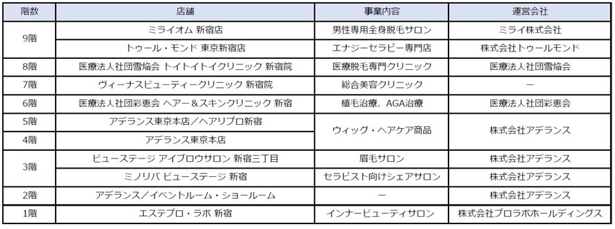 毛髪・美容・健康のウェルネス事業をグローバル展開する株式会社アデランス(本社:東京都新宿区、代表取締役社長 津村 佳宏)は、新宿区新宿三丁目にある自社ビル「ADビル」の1階に、株式会社プロラボホールディングス(本社:東京都港区、代表取締役CEO 佐々木 広行)の運営する「エステプロ・ラボ 新宿」が3月4日(土)にオープンしたことをお知らせします。これにより、「ADビル」の1階から9階には美容関連の店舗が集約され、“総合美容ビル”として幅広いニーズに対応します。