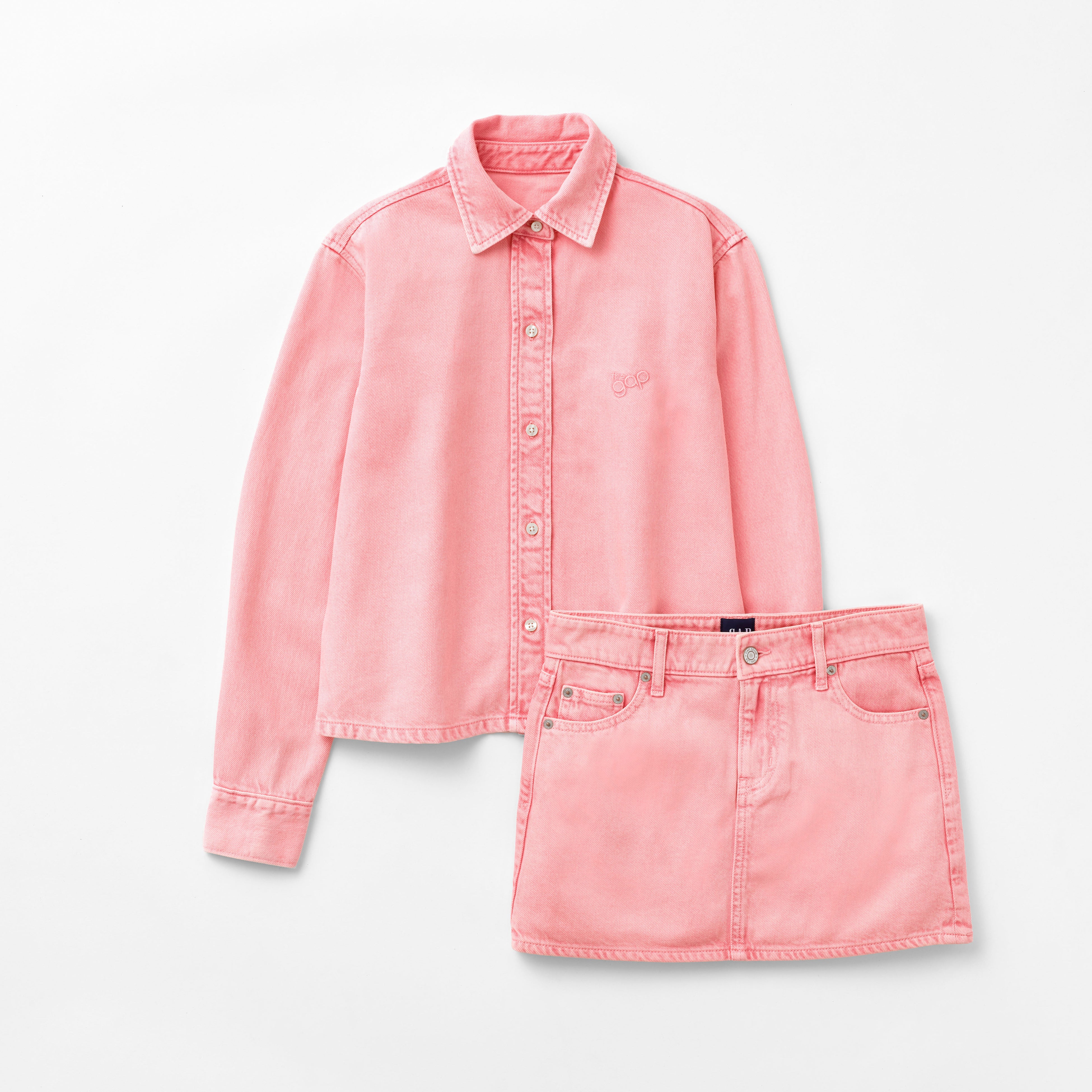 ウルトラソフトデニム ミニスカート (7,990円): シャツとセットアップになり、バックポケットにGAPロゴが入ったデニムスカート