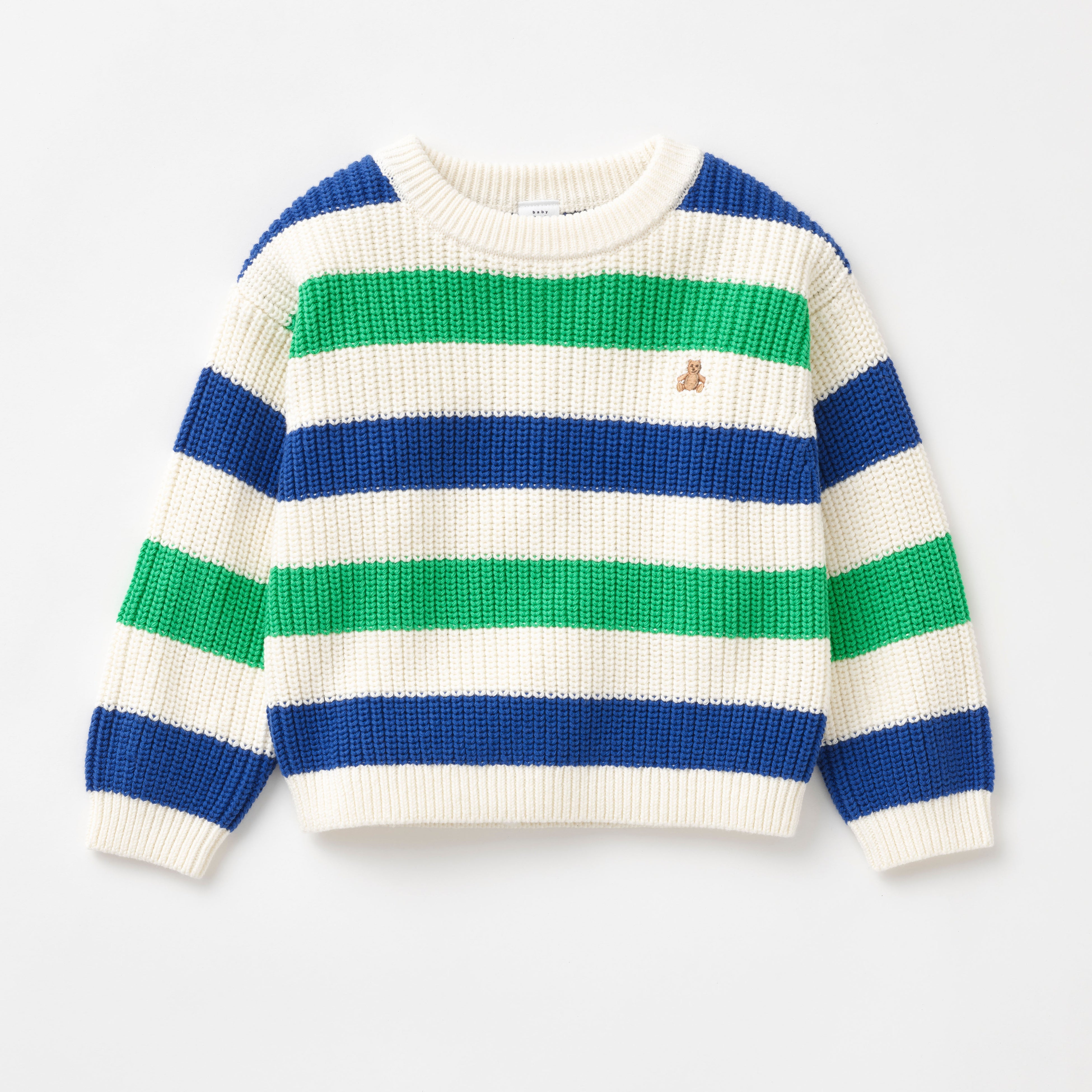 左から) ウィンドブレーカー ジャケット 6,990円 / グラフィックTシャツ 1,990円 / シェーカーステッチ セーター 4,990円 *70~110cm展開
