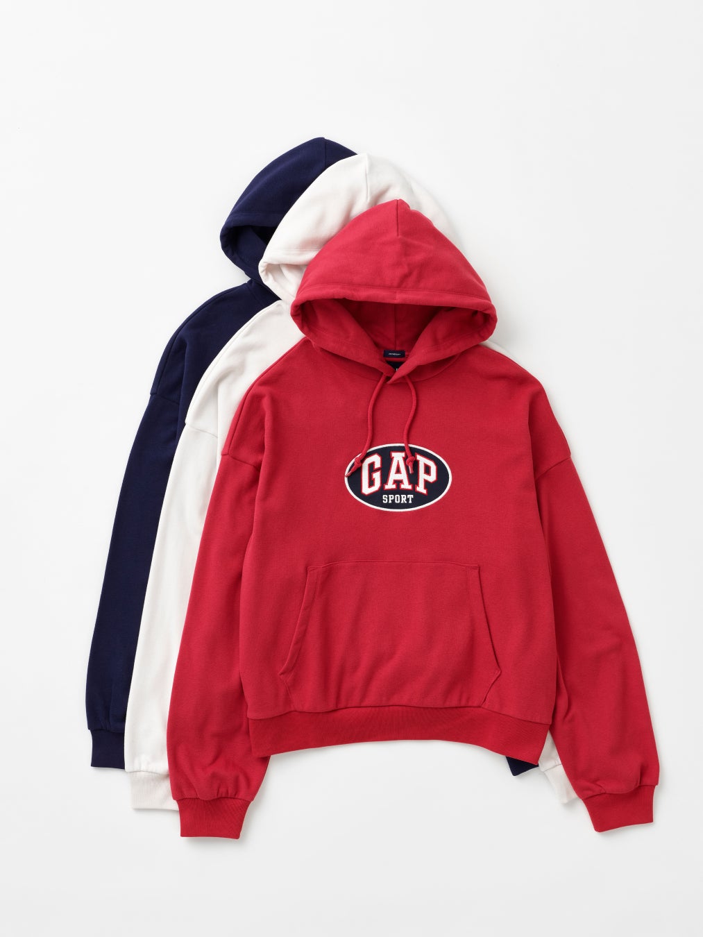 ヴィンテージソフト フレンチテリー オーバーサイズ GAPロゴ クロップドパーカー (5,990円): オーバル型のGAPロゴがポイントのパーカー