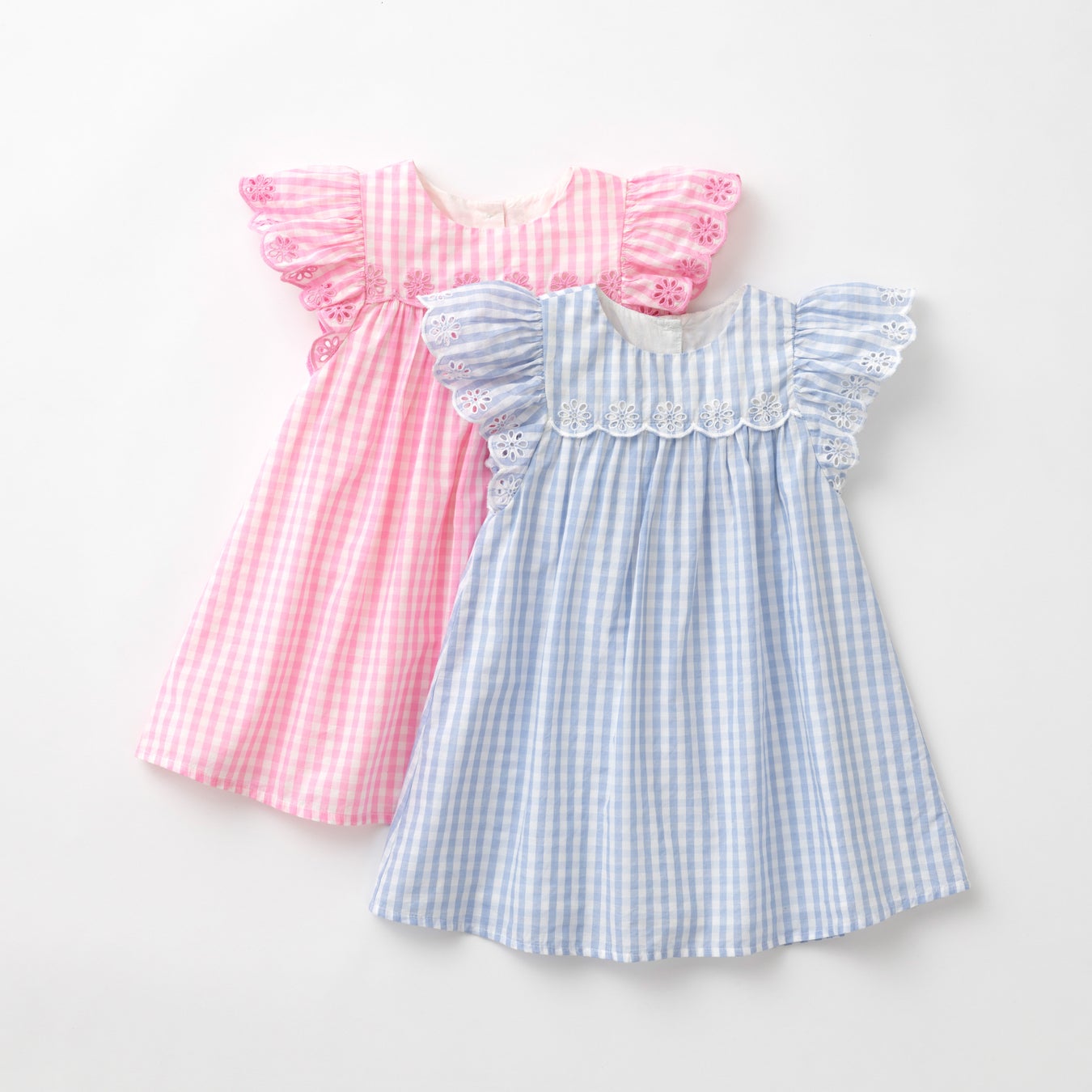左から) カラーブロック GAPロゴ ウィンドブレーカー 6,990円 / デイジー ホースシューデニム 6,990円 70~110cm展開 / アイレット ギンガムチェック ワンピース 6,990円 70~110cm展開