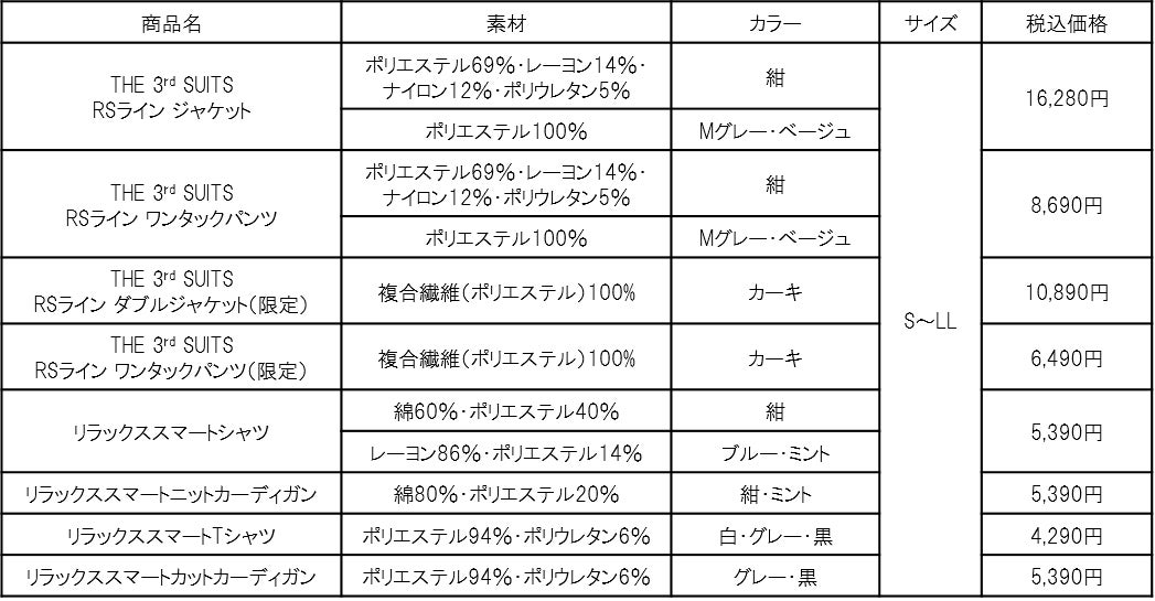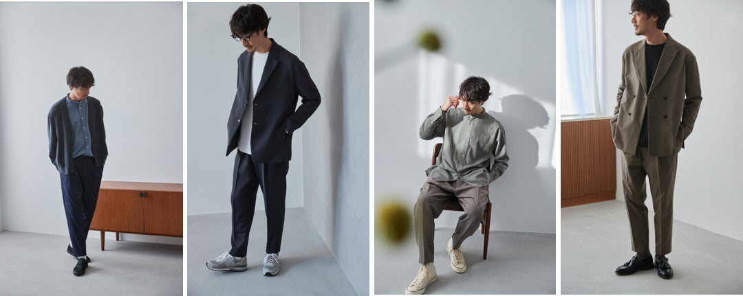 この度、「RSライン」初となる春夏アイテムを新しく発売いたします。トレンド感のあるミニマルでシンプルなスタイリングが簡単に完成するセットアップは、紺・Mグレー・ベージュでの展開です。そのほか、昨今のクラシック回帰を受け、ダブルジャケットを春らしいカーキでご用意するなど、新しい装いにチャレンジしたいお客様にもおすすめです。また、「RSライン」でコーディネートしやすいよう設計したTシャツ、カーディガン、シャツなどは、トレンドである同系色のコーディネートが簡単に決まる明るめのネイビー・グレーの他、ミントも展開。コーディネートに迷うお客様でも簡単にトレンドのスタイルをお楽しみいただけます。
