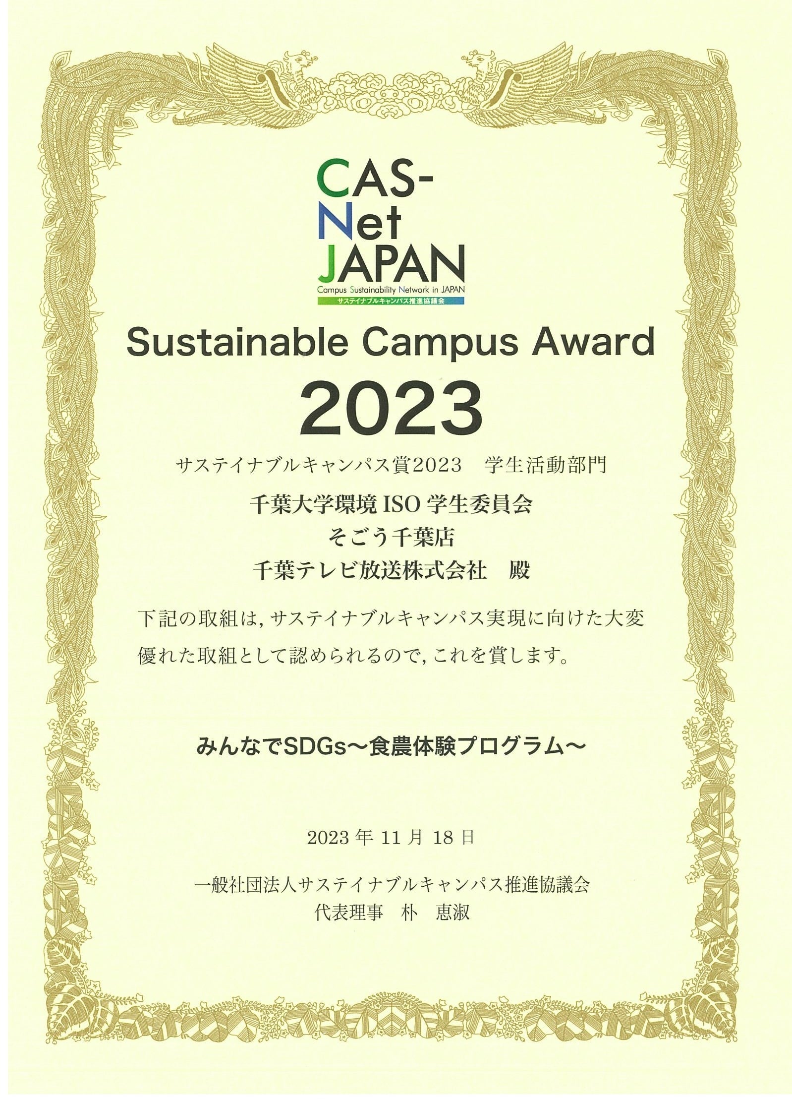千葉大学環境ISO学生委員会は2015年度、2017年度、2021年度に続き、4度目の受賞となりました。