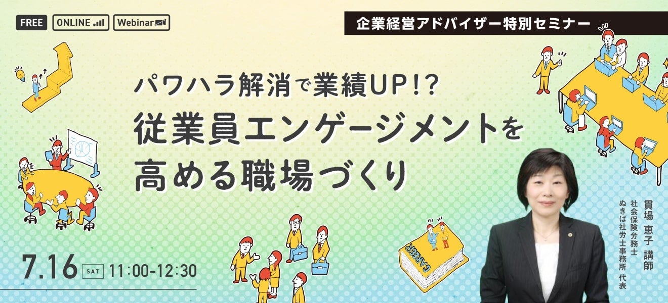 【無料セミナー】パワハラ問題を回避し従業員エンゲージメントを高める職場づくりを促進するセミナーを7/16実施します。