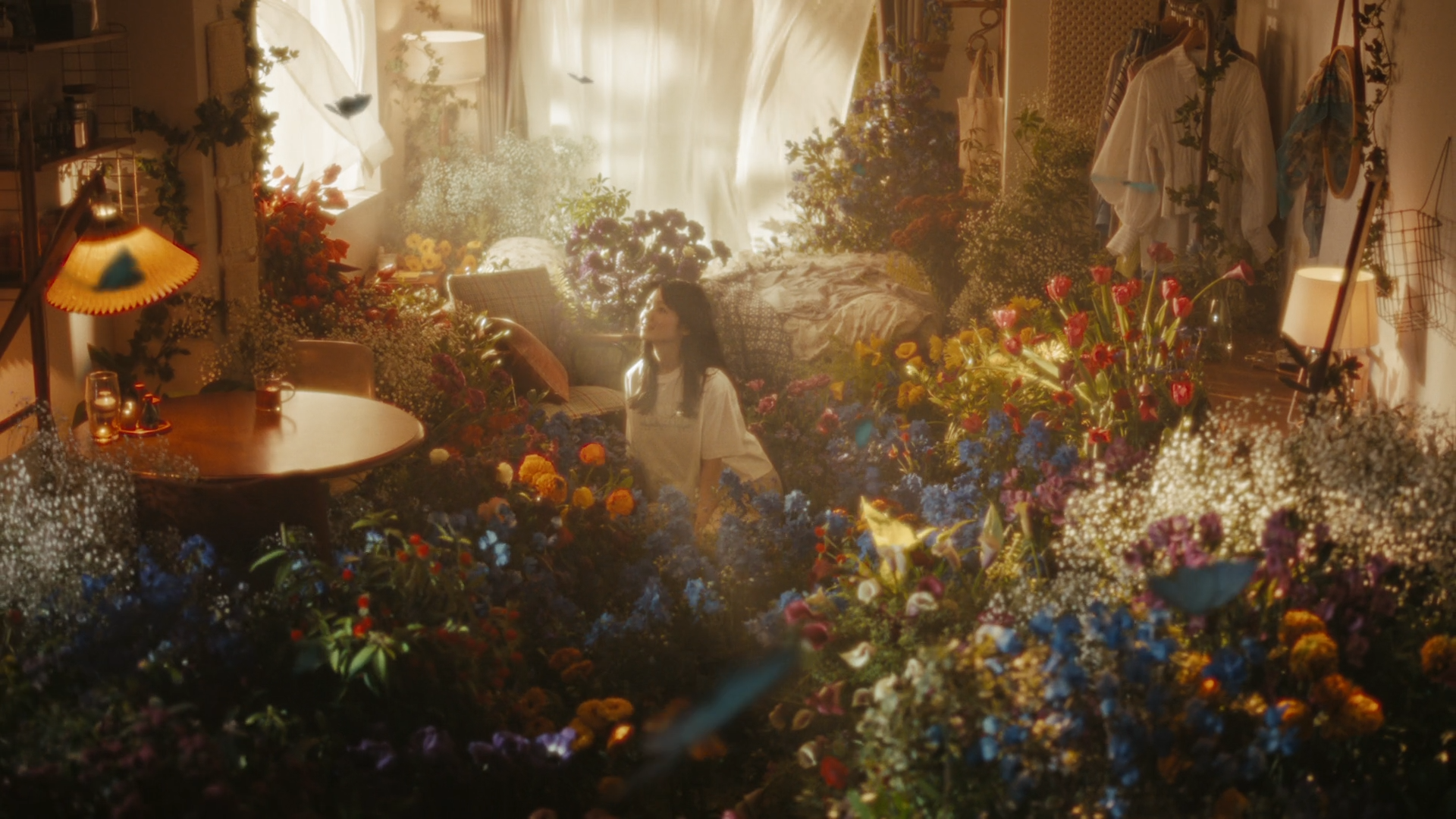 ■ストーリー:目覚ましのアラームが鳴り響く朝の部屋。「おはよう、いつも通りの私。」と、今日を始める南さん。このあと着ていく服を選びながら「この服を着るだけで、全部が思い通りになったりしないかな」と壮大な"期待”をする彼女。すると、その期待で世界が一変し、色とりどりの花やブルーの蝶が部屋中に広がっていきます。…もちろんそれが現実なわけもなく、我に返って「夢見すぎ?」と自分を諭してみたり。「でも、好きな服を着ていたらいいことあるかも」と、ちょっとの前向きさを胸に、ワンピースに着替えて外に出ると、目の前には、その"ちょっとした期待”を彩るような世界が広がっていました。最後は、「いいことある服。」というタグラインとともに、南さんが歩き出します。