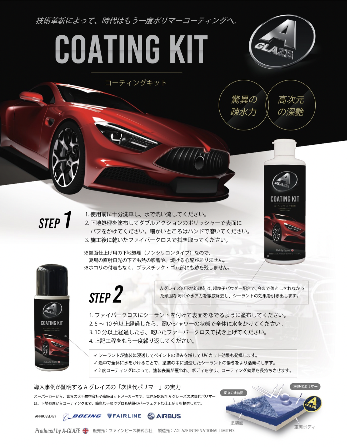 スーパーカーから、世界の大手航空会社や高級ヨットメーカーまで、世界が認めたAグレーズの「次世代ポリマー」は、下地処理からコーティングまで、簡単な手順でプロも納得のパーフェクトな仕上がりを提供します。