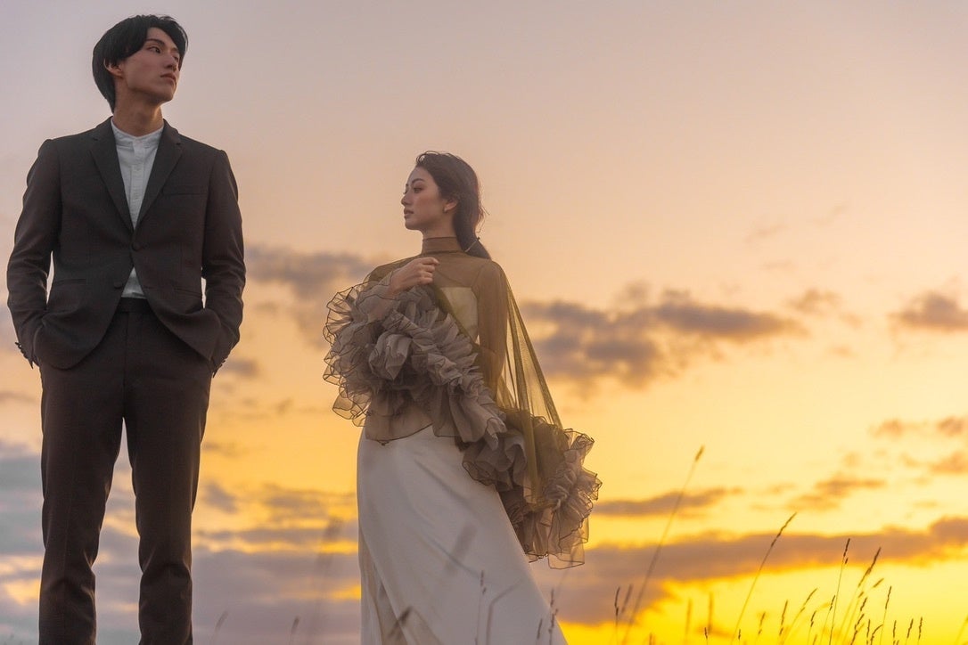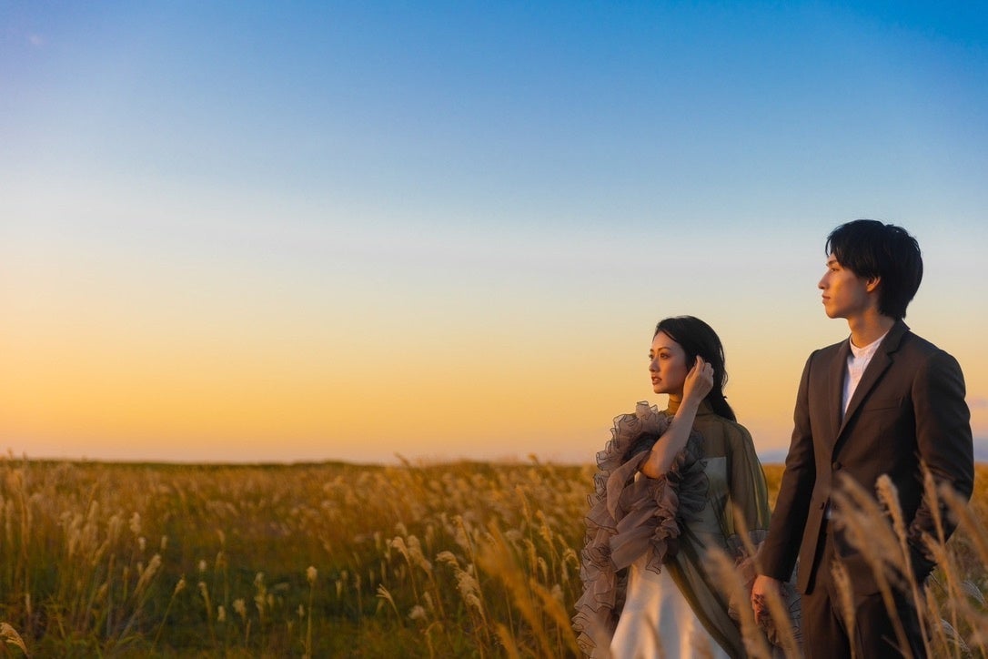 【オリジナル新作ボレロ着用】aim札幌店から夕陽×ススキが美しい秋のロケーションフォトウェディングのご提案