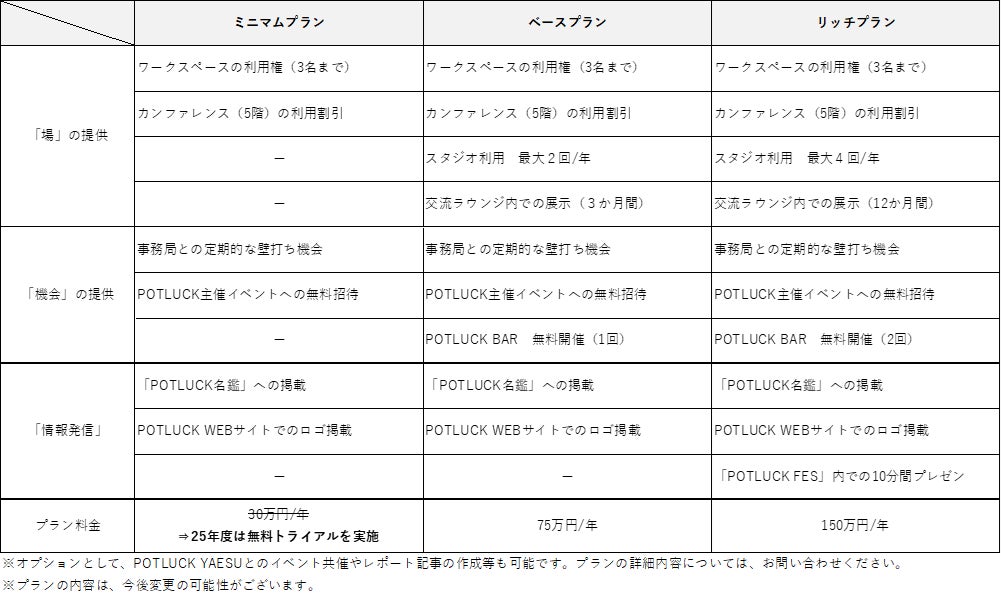 ●「POTLUCK YAESU」が地方自治体向けの新会員制度「POTLUCK パブリックパートナー」を開始 ●地方自治体との協業促進を行い、地域経済創発※1を目指す ●2025年度は20自治体を上限に無料トライアルキャンペーンを実施 |