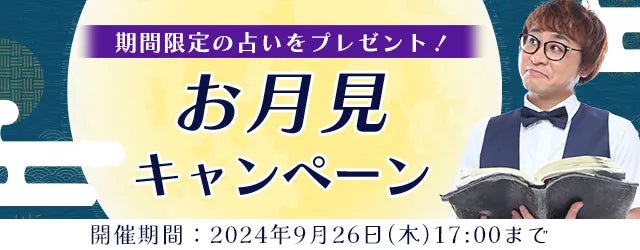 「アポロン山崎の占い」では十五夜の到来に合わせ『お月見キャンペーン』を開催中です。キャンペーン期間中、対象の鑑定を占っていただいた方には、期間限定の占いをプレゼントいたします。