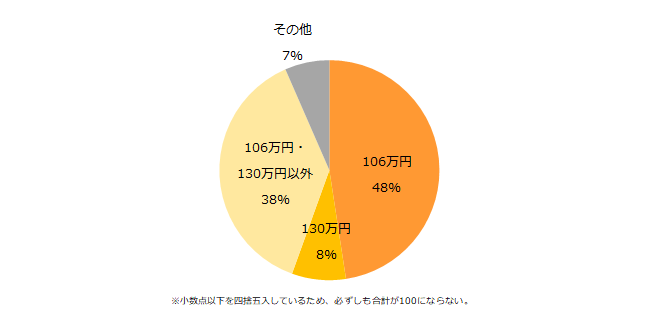 「“年収の壁”という言葉を知っていましたか?」と伺うと、「詳細まで知っていた」は36%、「なんとなく知っていた」は57%でした。また、現在扶養内で働いている方/離職中で扶養内で働くことを希望している方に「あなたにとっての年収の壁はいくらですか?」と伺うと、最も多かったのは「106万円」(48%)でした。