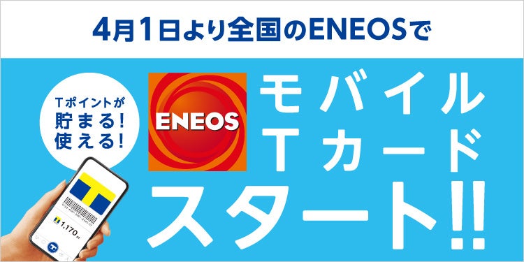 株式会社Tポイント・ジャパン(本社:東京都渋谷区、代表取締役社長:北村和彦)は、2022年4月1日より、ENEOS株式会社(本社:東京都千代田区、代表取締役社長:大田勝幸)が展開するENEOSのサービスステーション(SS)で、累計2000万ダウンロードを超えるモバイルTカードのサービス提供を開始いたします。