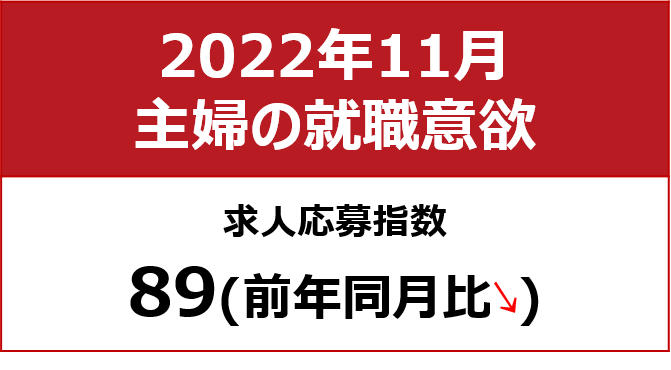 【主婦の就職意欲調査 2022年11月】主婦求人の応募指数89(前年同月比-4)