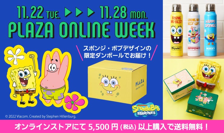 『スポンジ・ボブ』デザインのキュートなダンボールでお届け!「PLAZA オンラインウィーク」開催。