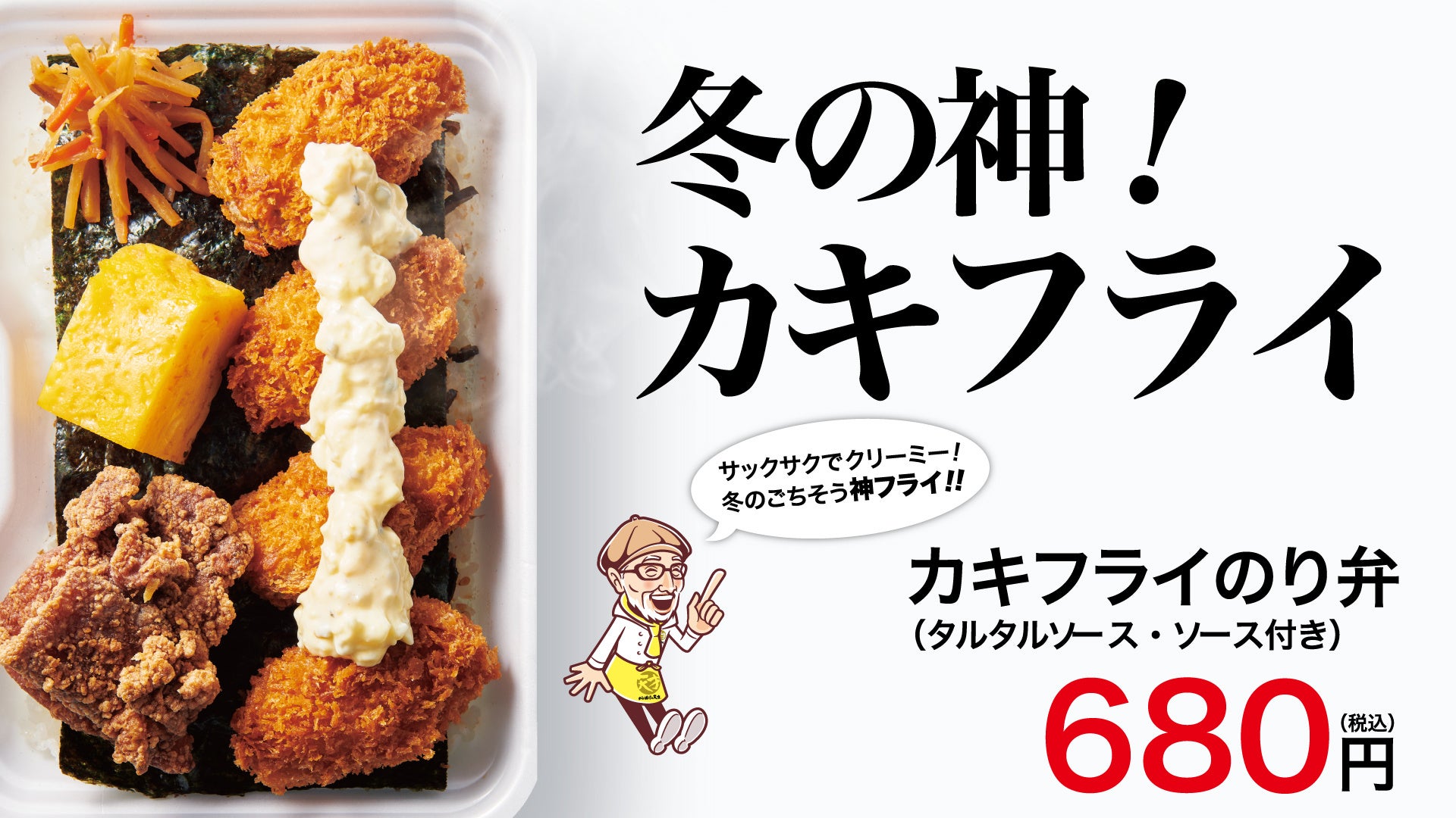 冬の神!サックサクでクリーミーな冬のごちそうカキフライ!「から揚げの天才」に期間限定「カキフライのり弁」が登場!