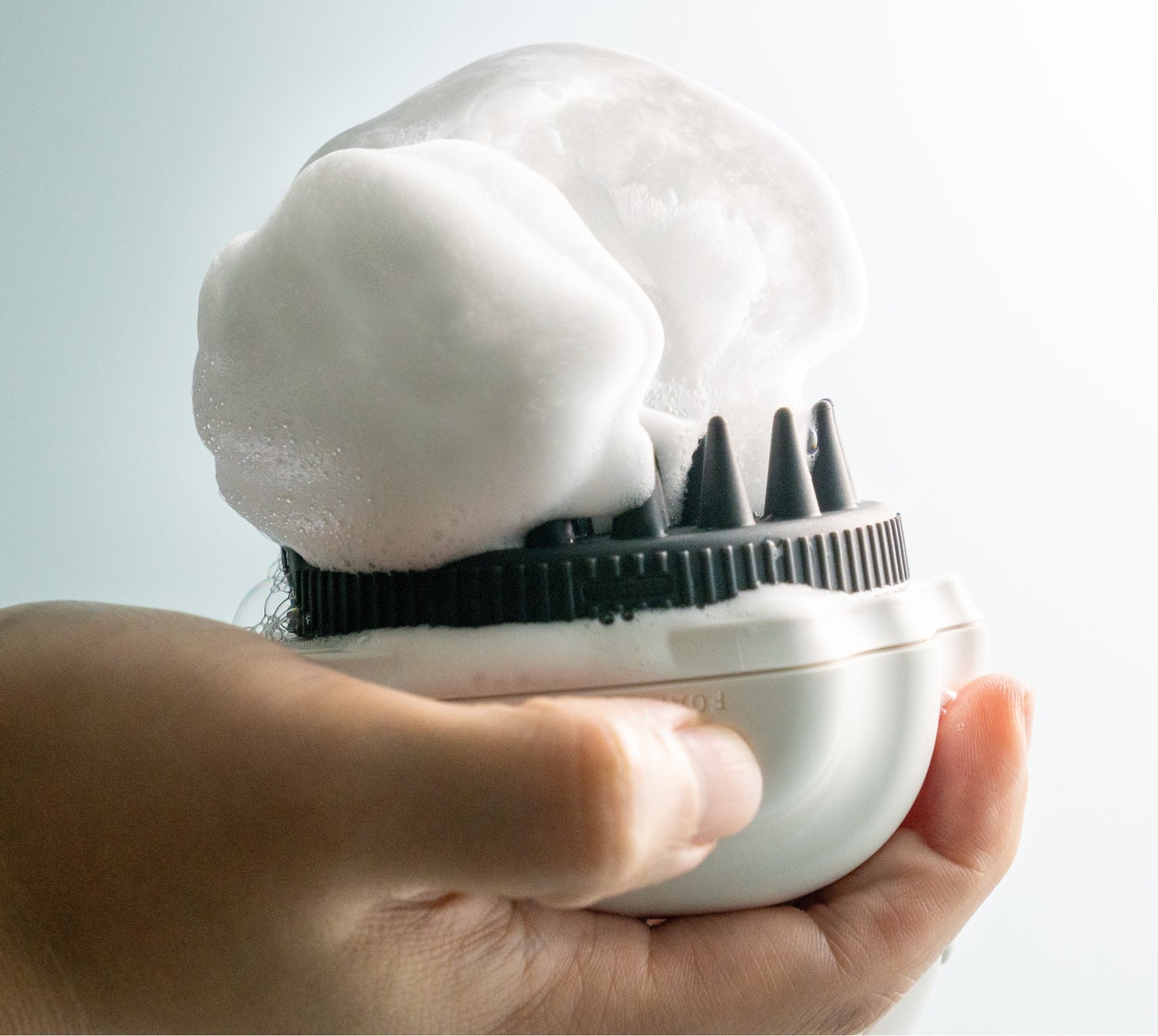 ③ブラシユニット側を上向きにしたまま、FOAMボタンを短押しして泡を生成します。