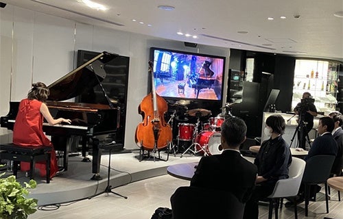 「ヤマハ・ミュージック・ロンドン」のリニューアルを記念し、10月6日(金)に、ピアノショールームイベントスペース「Yamaha Stage」で、ヤマハ銀座店とのリモートライブ「Ginza x London Remote Live」を開催しました。自動演奏機能付きピアノ「Disklavier(ディスクラビア)™」をオンラインで接続し、ロンドンと銀座の会場でそれぞれピアニストが演奏を披露しました。