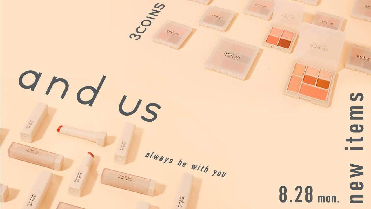 あなたの“ちょっと幸せ”をお手伝いする雑貨ブランド「3COINS」(スリーコインズ)では、コスメ・美容家電ライン「and us」(アンドアス)にて、新作のコスメシリーズを8月28日(月)より販売開始します。