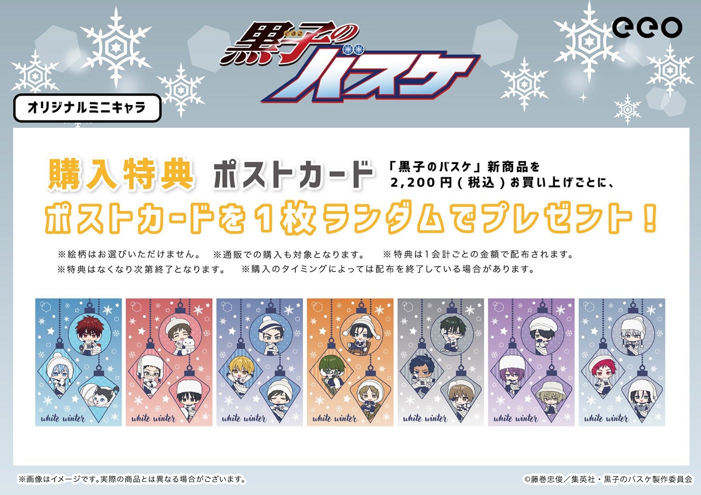 『黒子のバスケ』新商品のみを2,200円(税込)お買い上げごとに、ポストカード(全7種)をランダムで1枚プレゼント!