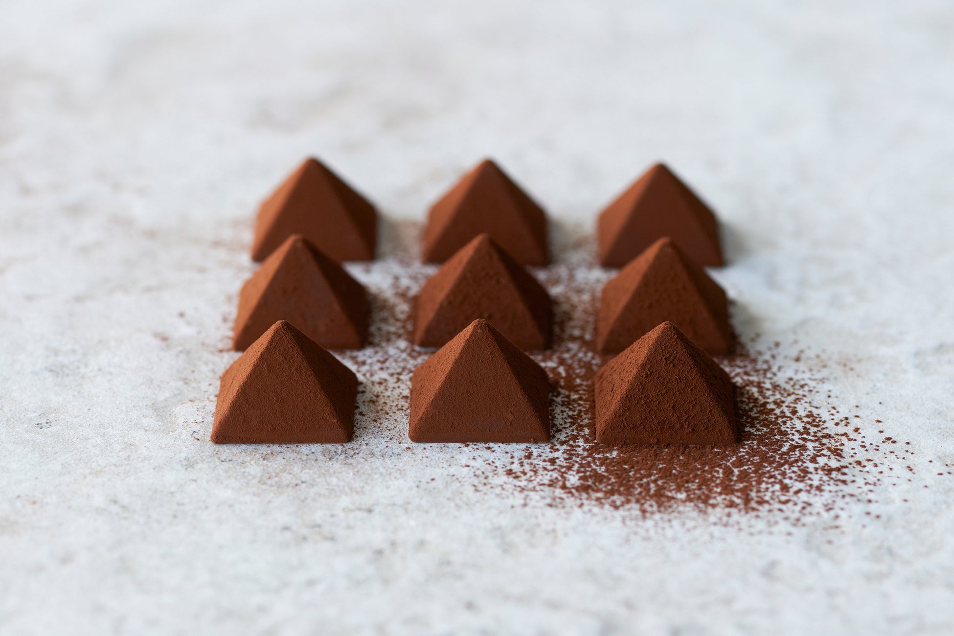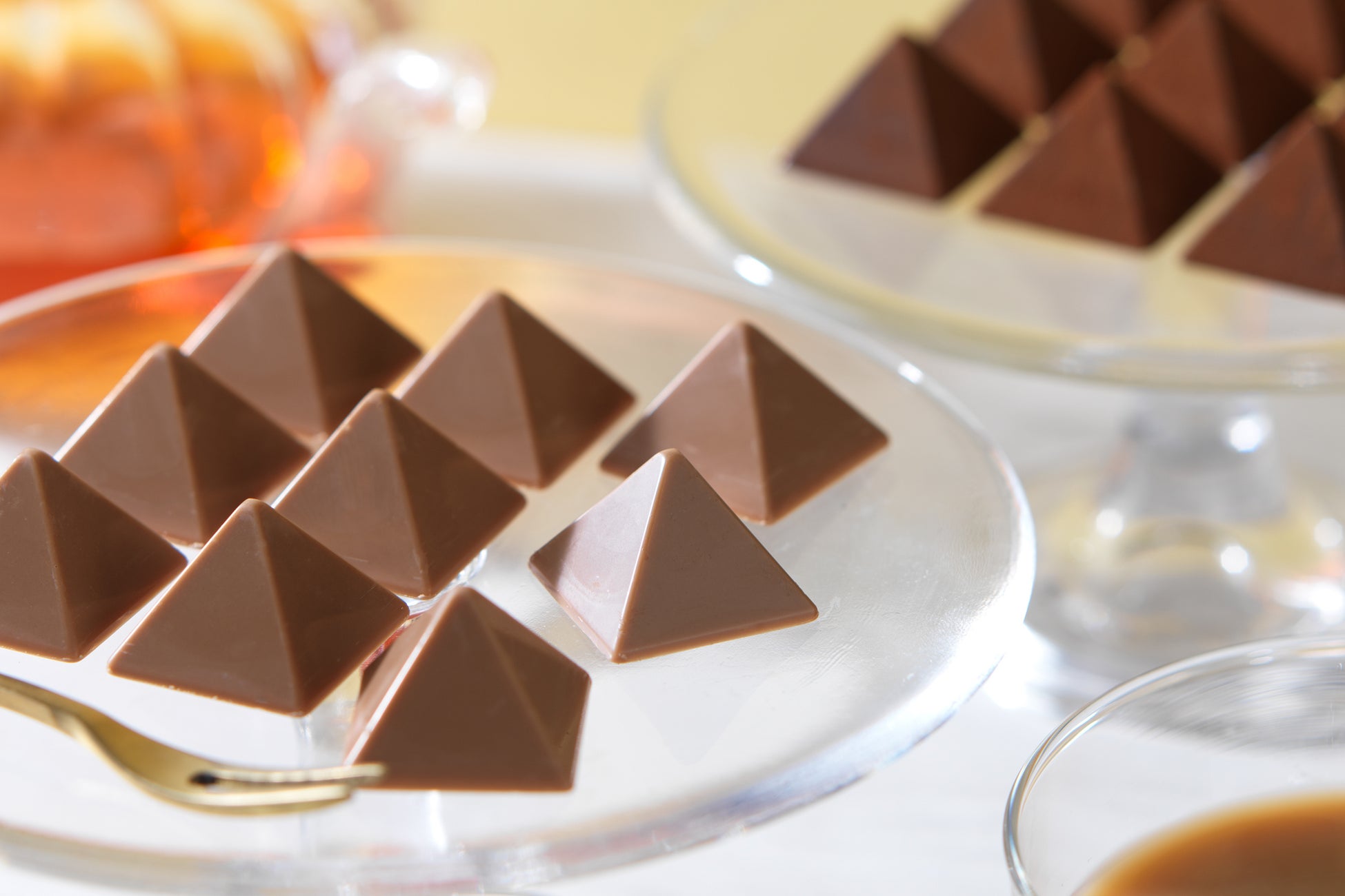 魔法みたいにすっとなめらかに消えていく口どけ。その秘密は、「21.9度」に設定した融点と、美しいピラミッドの形にあります。なめらかな口どけとともに、花咲くようなダージリンティーの香りもご堪能ください。