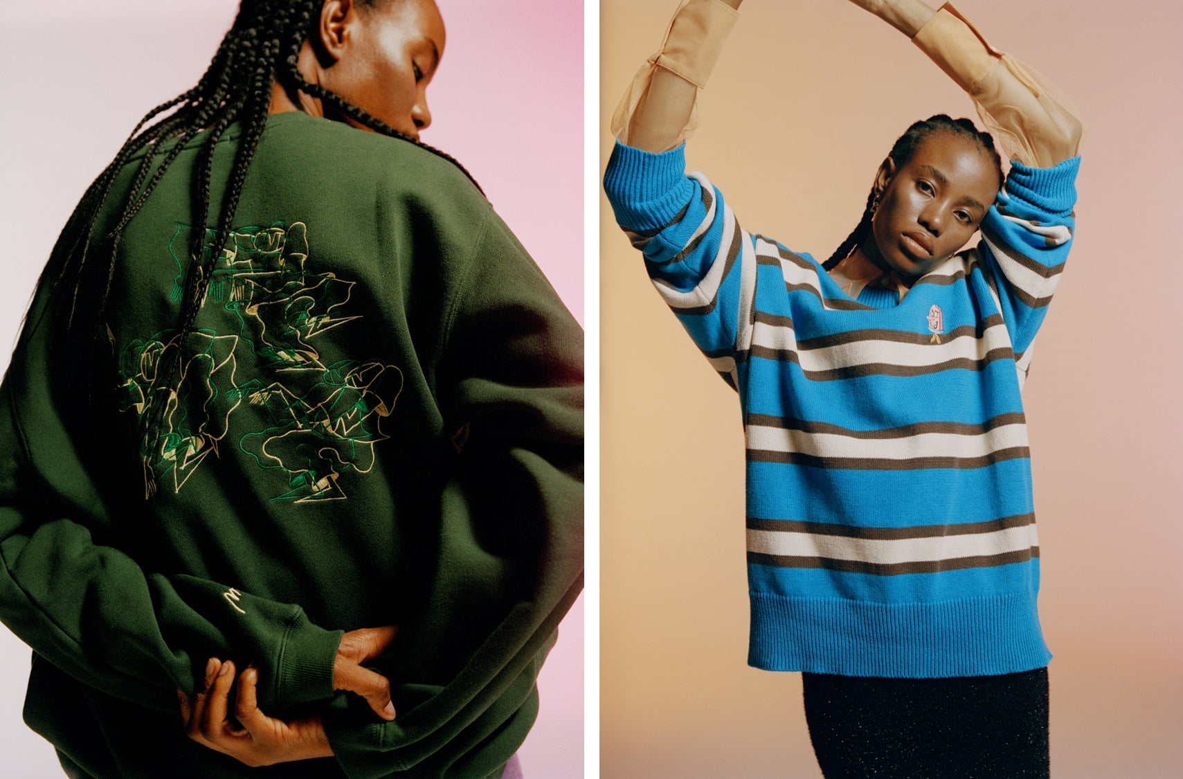 第11弾となる今回は、LEEGET氏との共同制作が実現しました。自身もHIPHOPダンサーとして活動しており、作品全てに共通してダンスの持つポジティブなエネルギーやグルーヴ感などを表現するLEEGET氏。今回は、" PROJECT U " のために描き下ろし、グラフィックを落とし込んだスウェットシャツやニットトップスを中心に、シャツやバッグなどと幅広いラインナップとなりました。