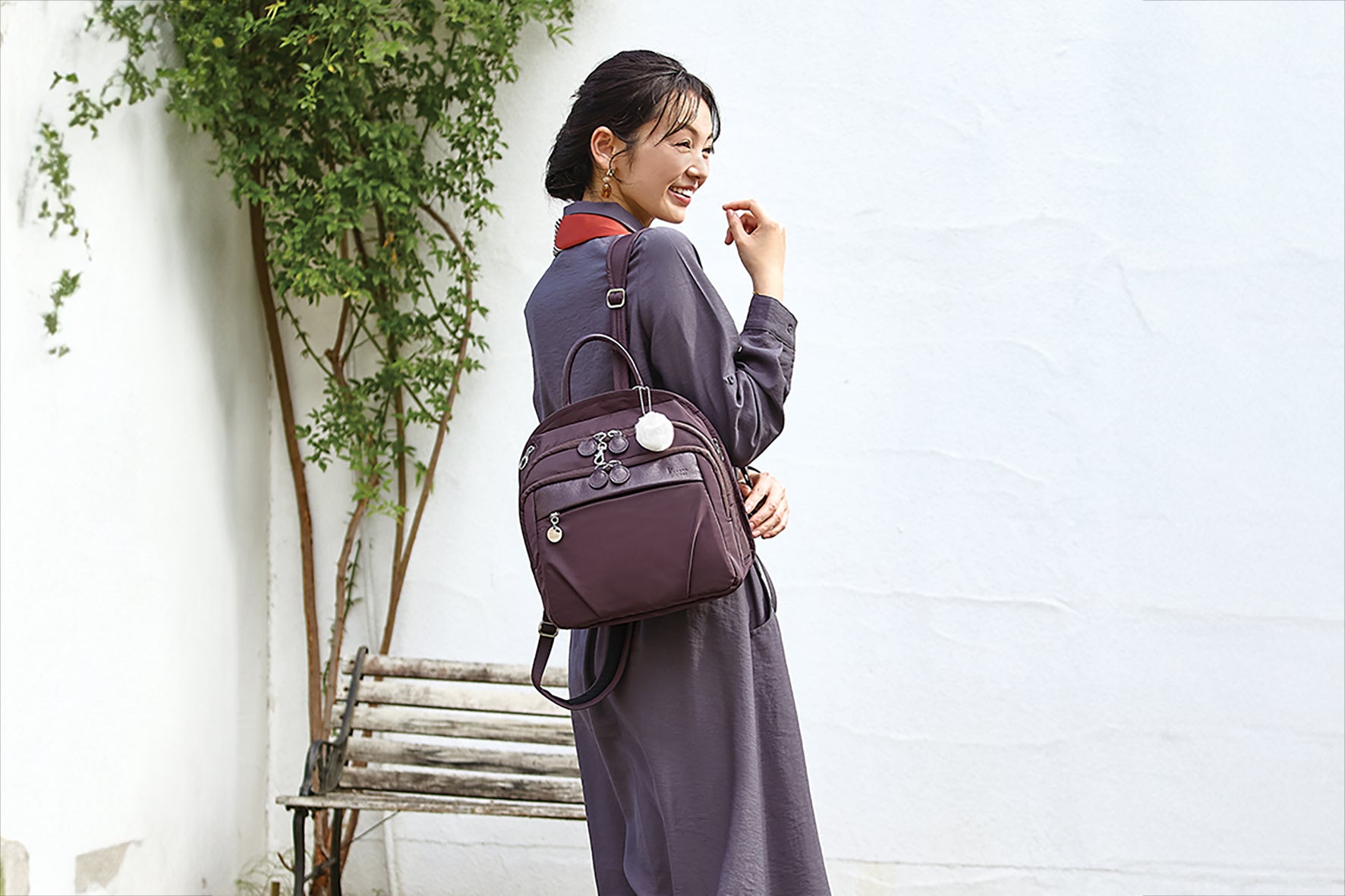 バッグメーカーのエース株式会社(本社:東京都渋谷区 代表取締役社長:森下 宏明)は、旅の達人・竹内海南江さんとの共同開発レディーストラベルバッグブランド「カナナプロジェクト」から、お太鼓結びの着物帯をイメージした「カナナリュック4」の秋冬限定色“ブラックチェリー”を、直営店、オンラインストアならびに、全国の主要百貨店・専門店にて、順次発売開始しました。
