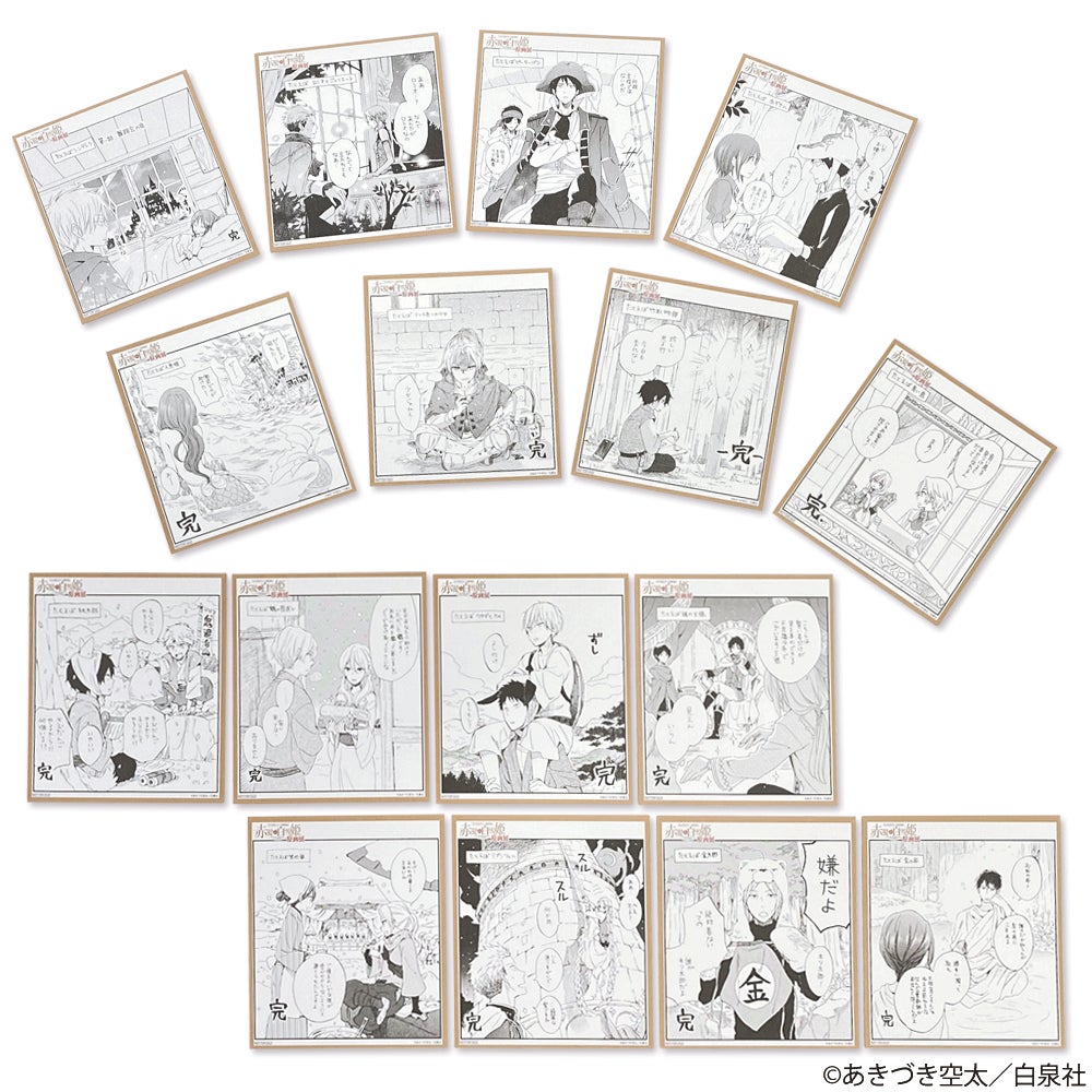 購入特典として、赤髪の白雪姫原画展描き下ろしの「等身キャラ5種」と「ミニキャラ11種」のコースターを、1商品につき等身イラスト/ミニキャラより1枚ずつランダムで2枚プレゼントいたします。
