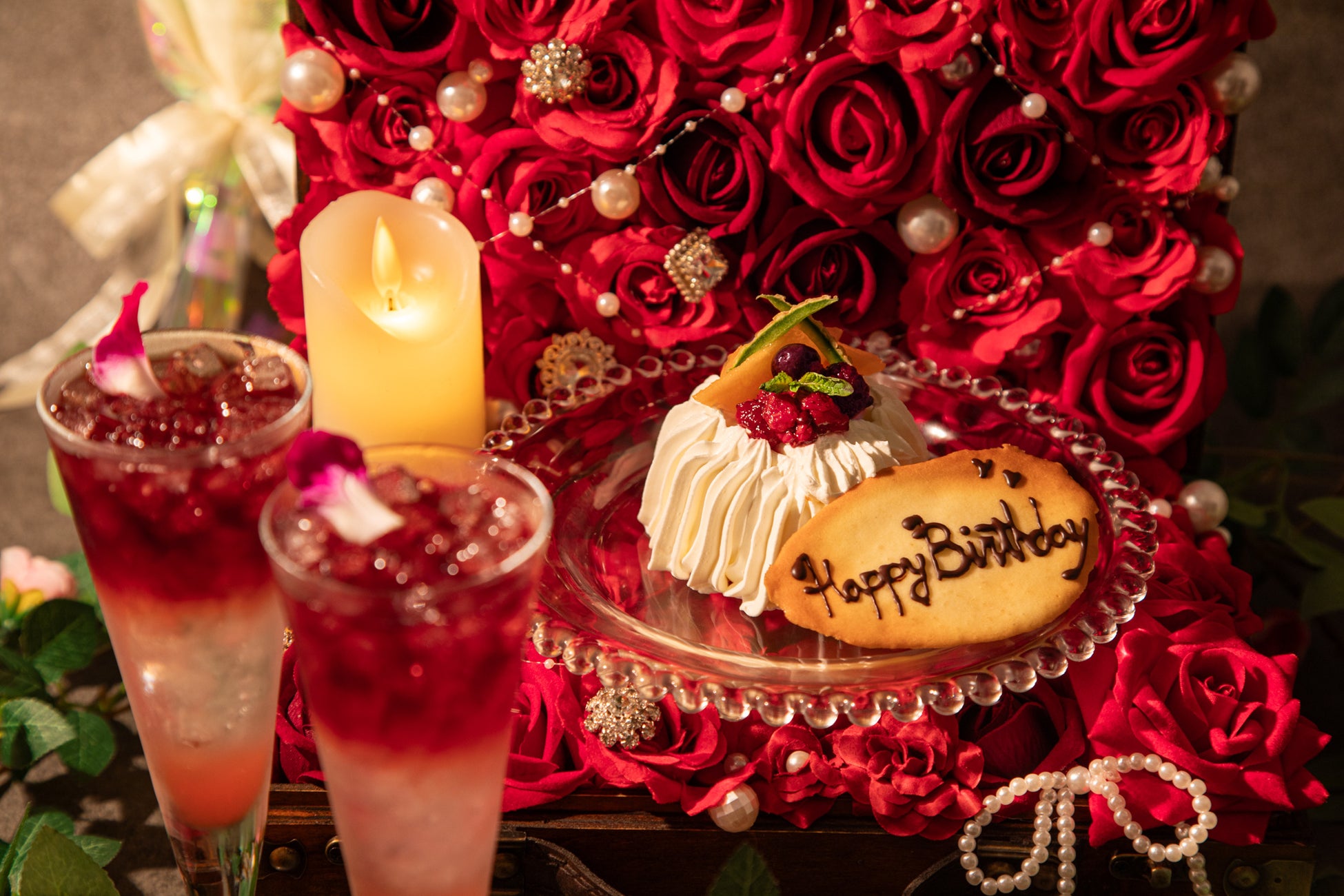 ■薔薇BOXのアニバーサリーケーキ&乾杯用記念日カクテル付きコース