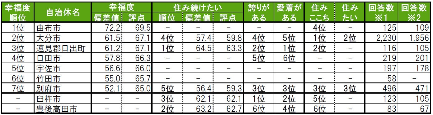 いい部屋ネット「街の幸福度 & 住み続けたい街ランキング2022<大分県版>」(街の住みここちランキング特別集計)発表