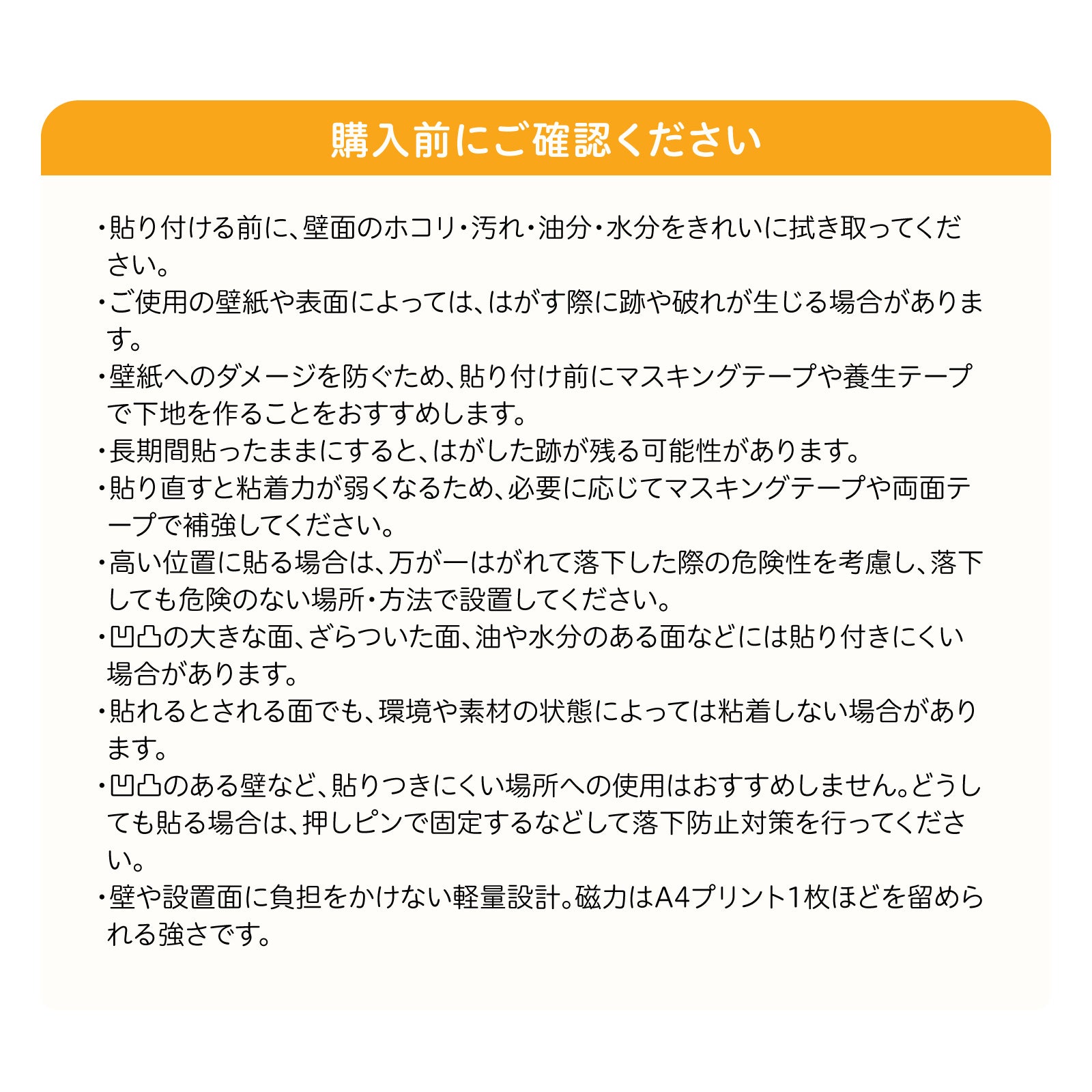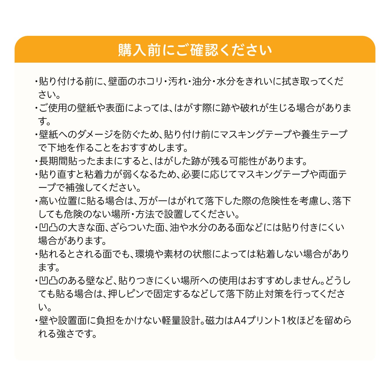 ※凹凸のある壁紙・ざらついた面には貼りつきにくい場合があります。