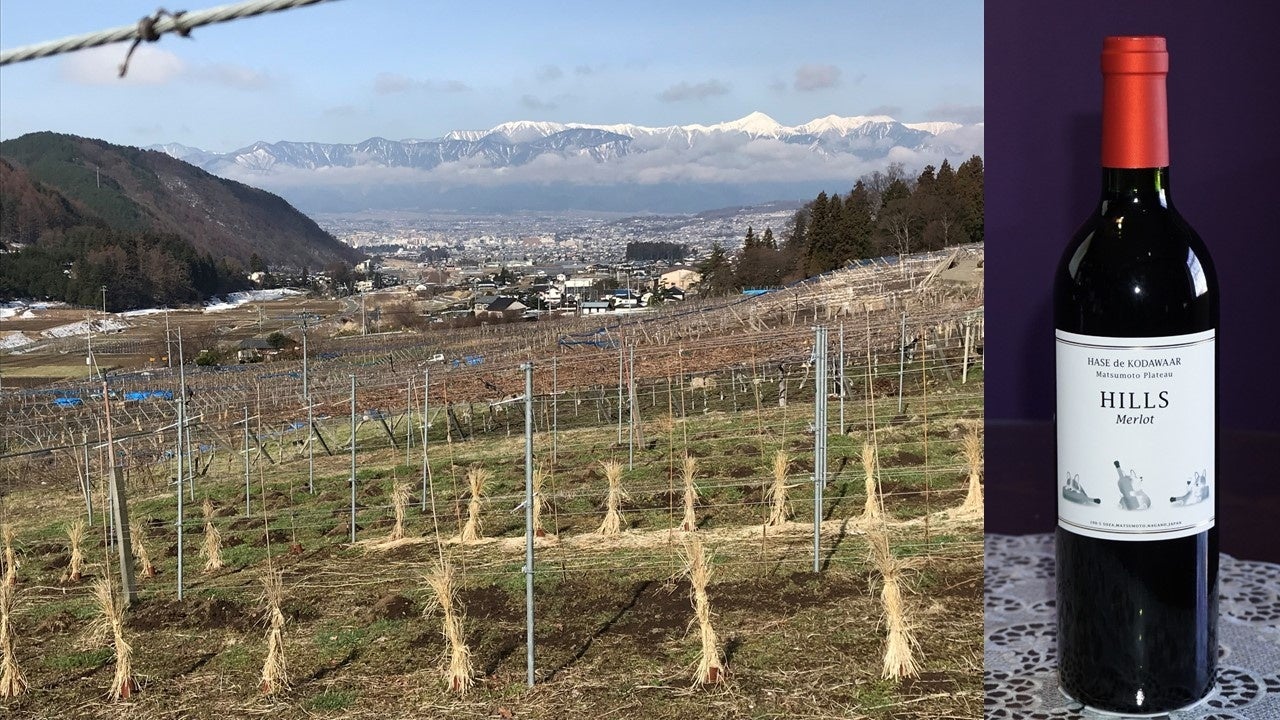 "松本平"は、塩尻市から、松本、安曇野、大町市に広がる盆地です。冷涼な気候と果樹栽培に向いた土壌では、古く“松からぶどうの栽培とワイン醸造が行われてきました。