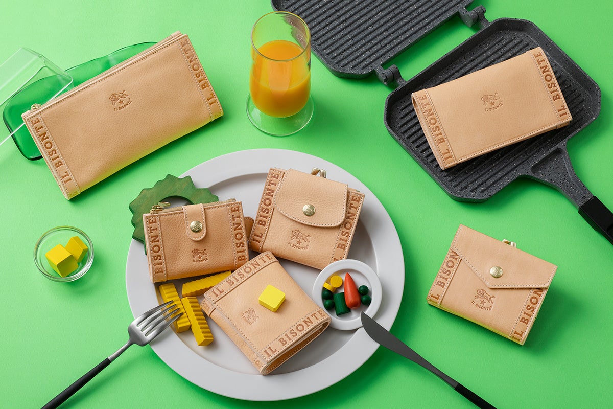 「IL BISONTE」のロゴを刻印したヌメ革テープを両サイドに配した日本限定コレクション。