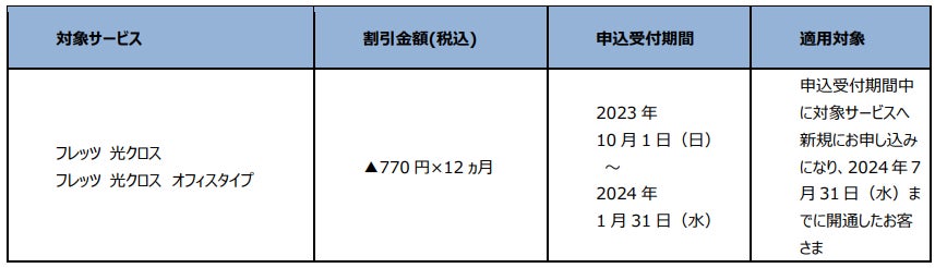 フレッツ光新規申込時等の割引の実施について
