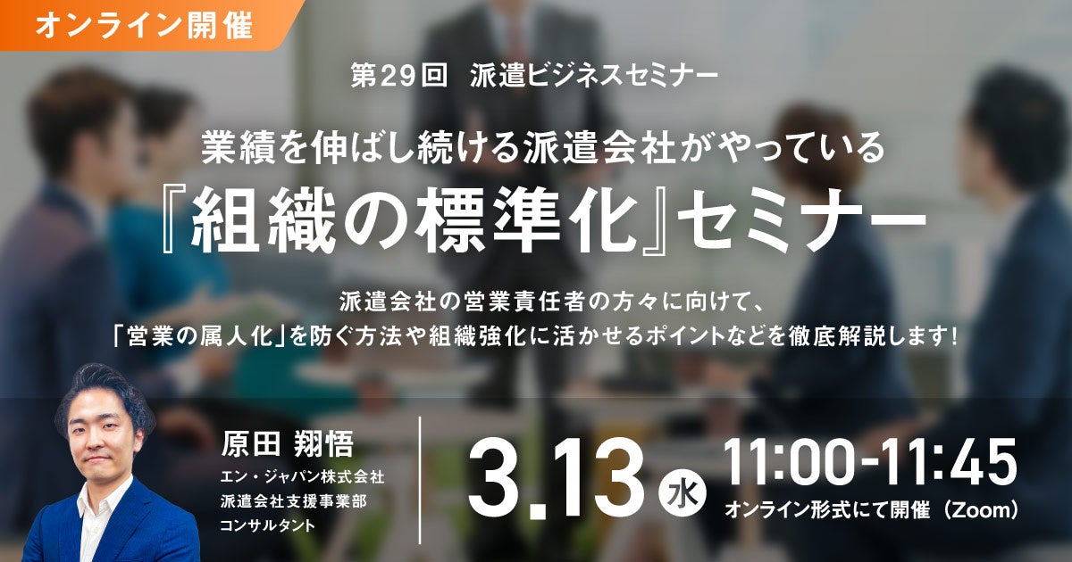 派遣会社の営業責任者が押さえるべき業績を伸ばし続けるための『組織の標準化』セミナー