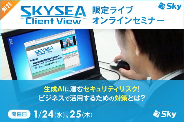 1月には、今IT業界で最も注目されている「生成AI」について、ビジネスで活用する際に知っておきたいセキュリティリスクと、その対策を考えるセミナーを実施。そのほか、OS・ソフトウェアのアップデート管理や、テレワークにおける生産性の可視化など、「SKYSEA Client View」でご支援できるポイントをさまざまなテーマでお届けします。