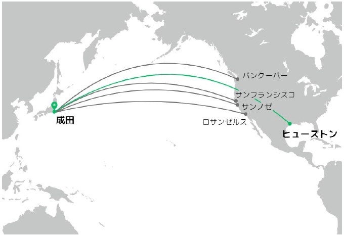 ヒューストンへの便は成田を午前中に出発することで、現地に朝6時台に到着となり、到着日を最大限に活用でき、さらにアメリカ国内および中南米各地への接続も可能になります。