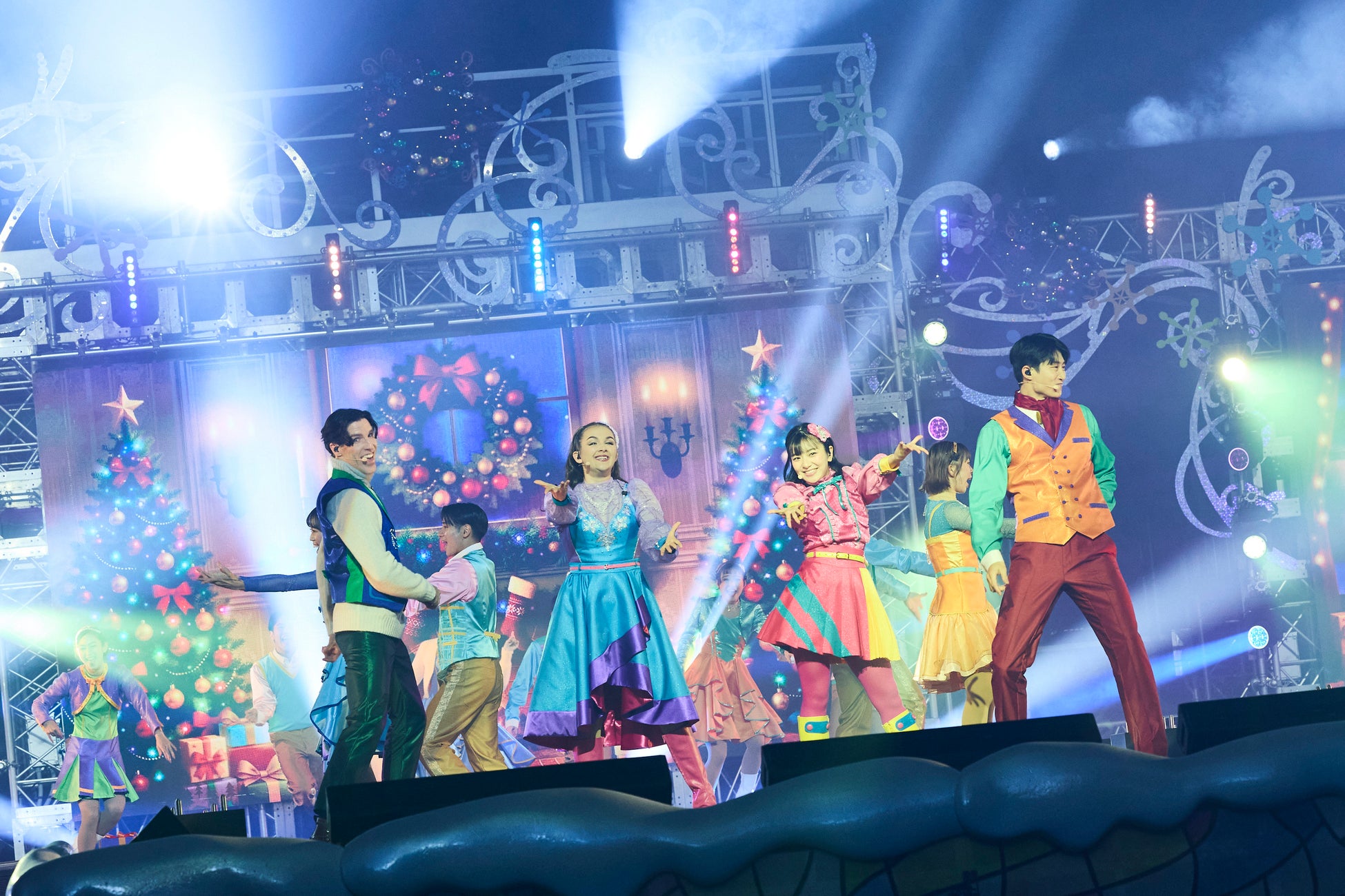 実力派シンガーやダンサーのクリスマス・ソングやダンス、巨大スクリーンの映像やキャンドル、ランタンの輝く光など華やかな演出でクリスマスを祝福する新ショーに、会場から拍手と歓声が沸き上がりました。ステージには、ハローキティ、スヌーピーとチャーリー・ブラウン、エルモやセサミストリートの仲間たちも次々と登場し、幸せなクリスマスの時間のために、本当に大切なものを気づかせてくれる心温まるストーリーを展開しました。クライマックスには、ゲストの皆さまもご自身のスマートフォンなどでライトを灯し、会場全体が溶け合うように光り輝きました。夜空に雪が舞い、華やかなパイロが打ち上がる光に包まれた至福の空間で、ゲストの皆さまは幸せなフィナーレの感動に浸りました。