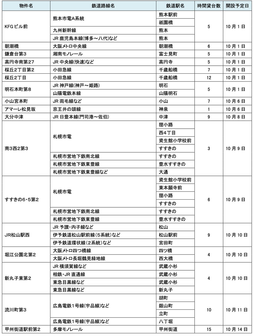 10月にオープンおよびオープン予定の「パーク&ライド」に適した駐車場は46件、「レール&カーシェア」に適したステーションは88件です。