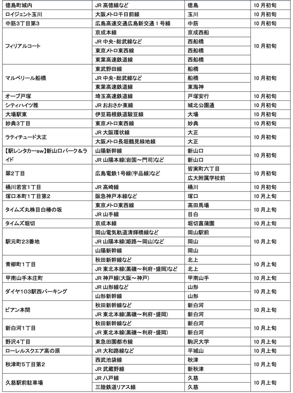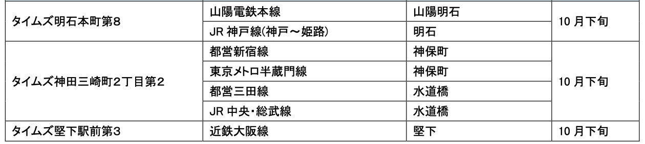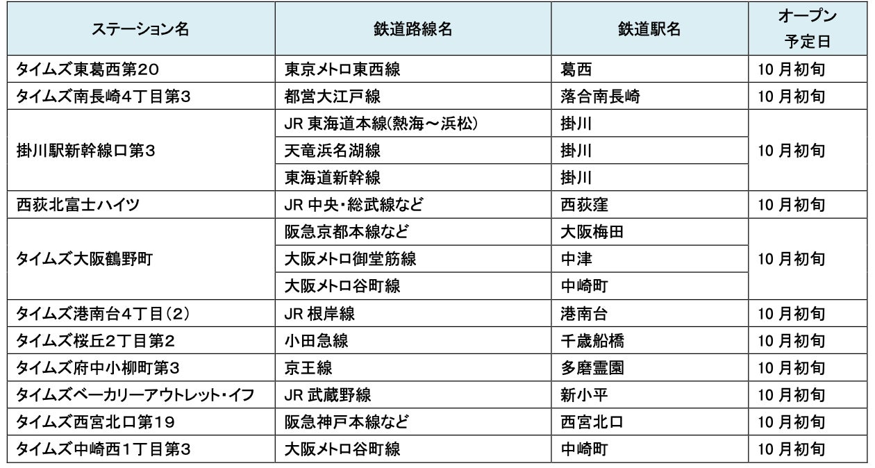 パーク24株式会社(本社:東京都品川区、社長:西川光一)は、温室効果ガスの排出量削減に繋がる移動法「パーク&ライド」および「レール&カーシェア」が可能なタイムズパーキングおよびタイムズカーステーションの2025年10月におけるオープン予定をお知らせいたします。