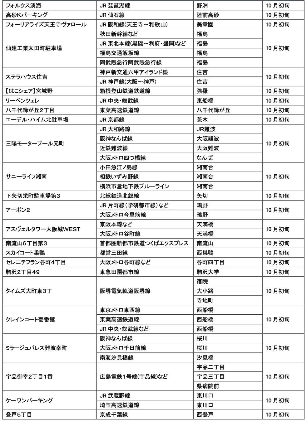駐車場およびカーシェアステーションのオープン予定については毎月第5営業日にお知らせいたします。