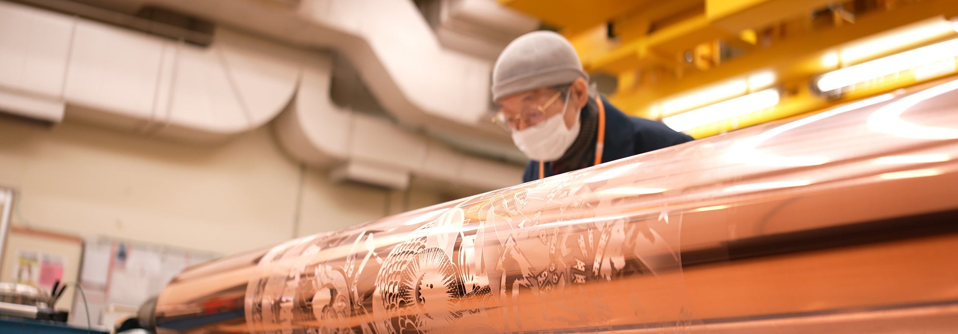 高度成長期の日本の出版を支え、グラビアアイドルの語源ともなったグラビア印刷。その印刷機の大きさは、長さが約60メートル、高さが約15〜20メートルと、5〜6階だてのビルに相当します。この巨大な機械で、どのようなプリントが行われたのか。また赤塚不二夫のキャラクターが、どのように引用されているのか。これらの解説を、ギャラリーの壁面全体に掲示します。