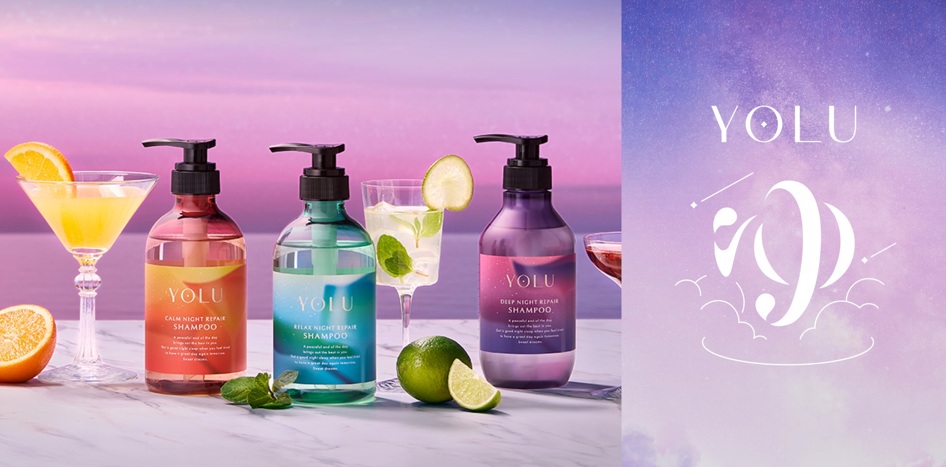 今回お試しいただけるYOLUの夏限定「モクテルナイトシリーズ」は、モクテルで人気のレシピをイメージした夏のやすらぐ夜にぴったりの爽やかなアロマティックフレグランス。寝苦しさを感じる季節、爽やかな香りと共に気持ちが軽くなるような安らぎの時間を提供します。さらに夜のひとときに安らぎを提供したいYOLUの想いと、お酒が飲めない人にもノンアルコール飲料を通じてゆっくりと安らぐ時間を提供したいサントリー「のんある気分」の想いからこの度初のコラボレーションが決定しました。