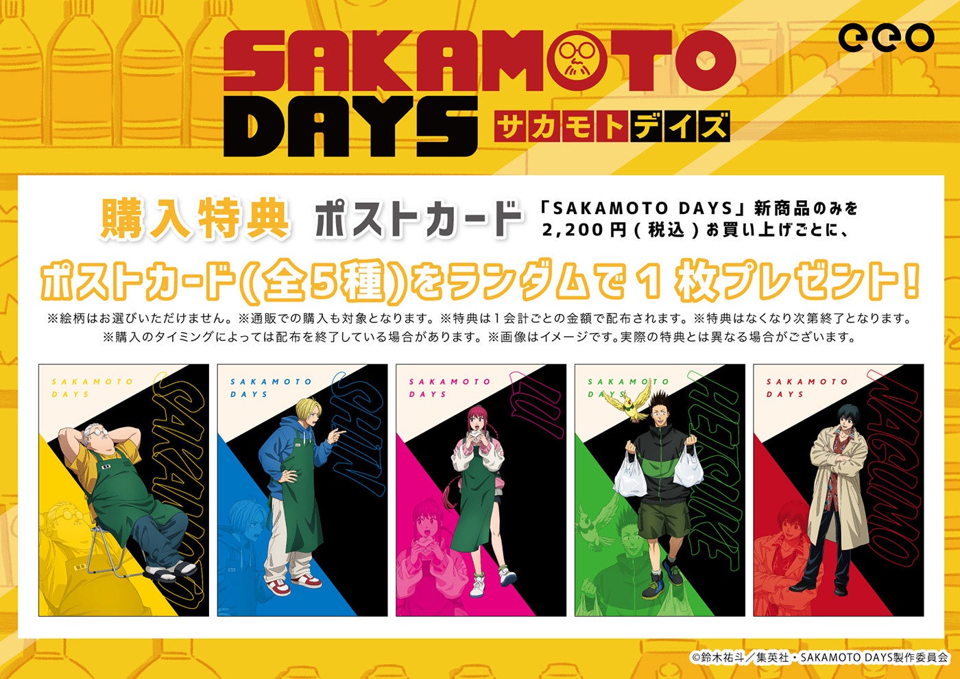 TVアニメ『SAKAMOTO DAYS』新商品のみを2,200円(税込)お買い上げごとに、ポストカード(全5種)をランダムで1枚プレゼント!