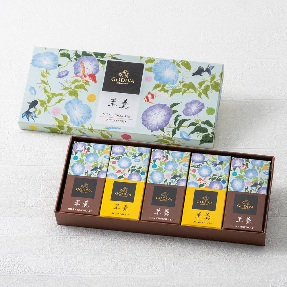 またこの時期、カカオをフルーツとして楽しむことができる、つめたいデザート「ムースショコラ エ カカオフルーツジュレ」や、贈答用にもおすすめの「羊羹」も期間限定で販売します。どちらのパッケージも夏にふさわしい涼やかな印象のデザインです。