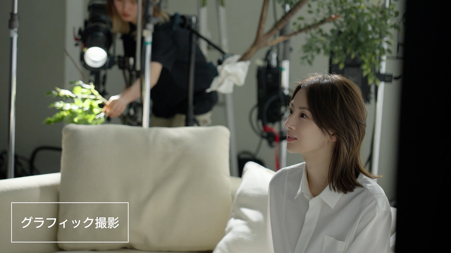 撮影中はスタッフと楽しそうに会話されていた北川さん。本編では見ることのできない、自然体の笑顔溢れる北川さんの姿もメイキングでお楽しみいただけます。