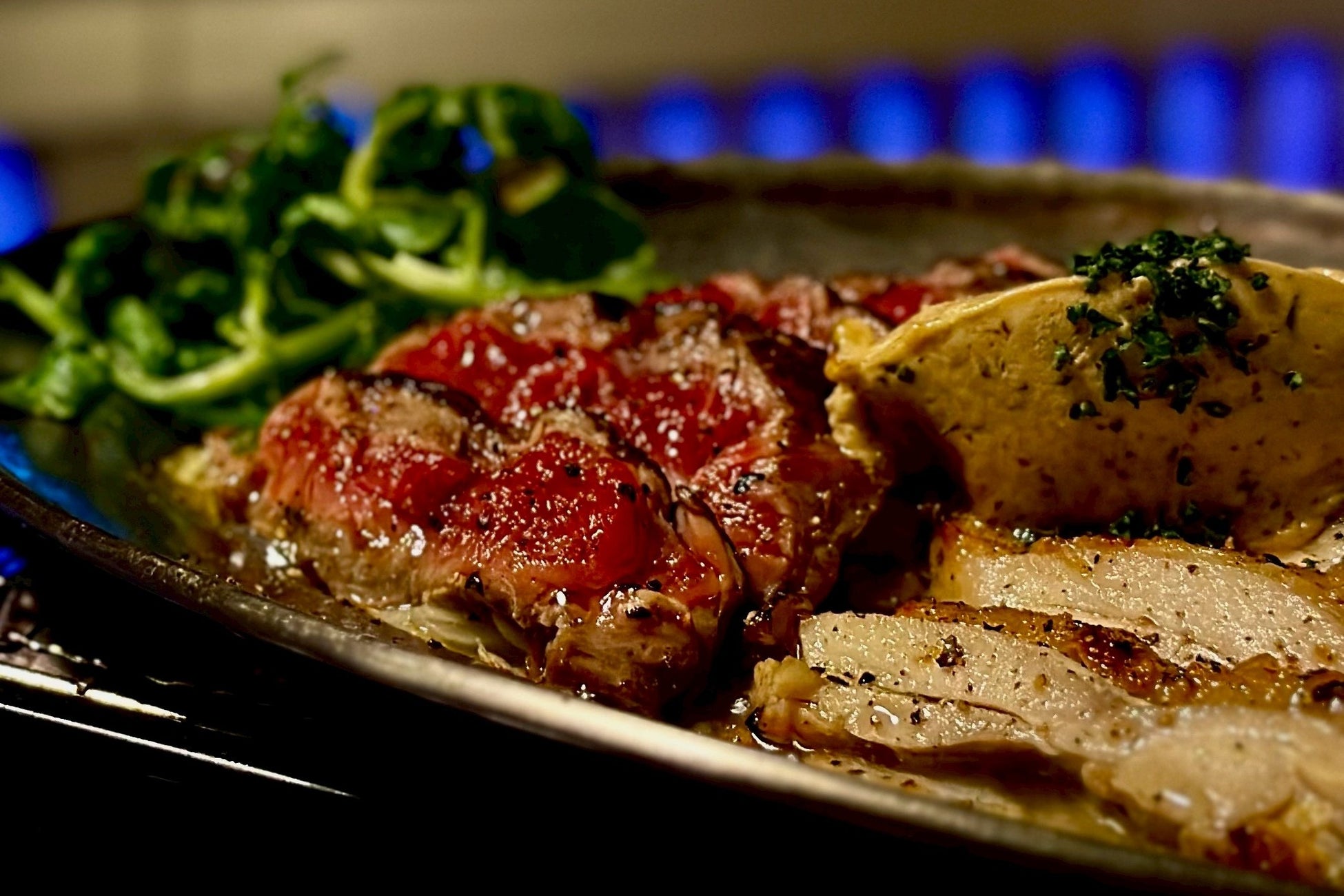 大川沿いの開放的なテラスエリアで、ローストビーフBBQや石窯ステーキピザなどの本格肉イタリアンとともに、厳選ワインやカクテルなどを楽しめる特別な空間をご提供します。
