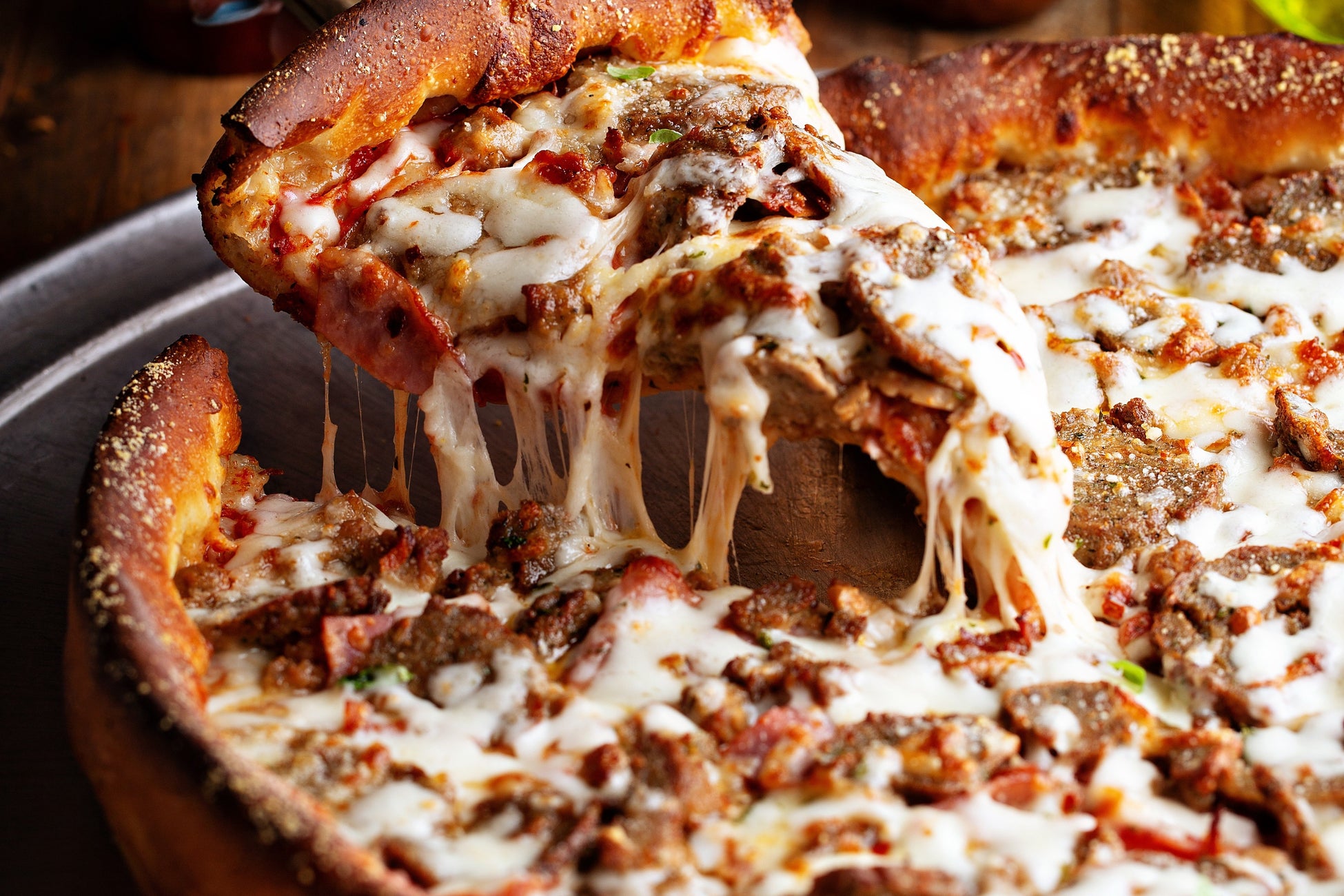 たっぷりチーズと粗挽き牛ステーキの石窯ピザ