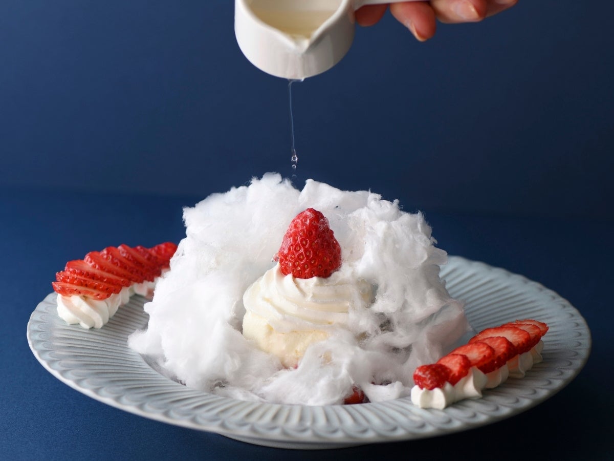 まるで雲のようなエアリー感のあるコットンキャンディーの中には、フレッシュな苺とコクがあり爽やかな酸味の『豆乳レアチーズケーキ』がひそんでいます。