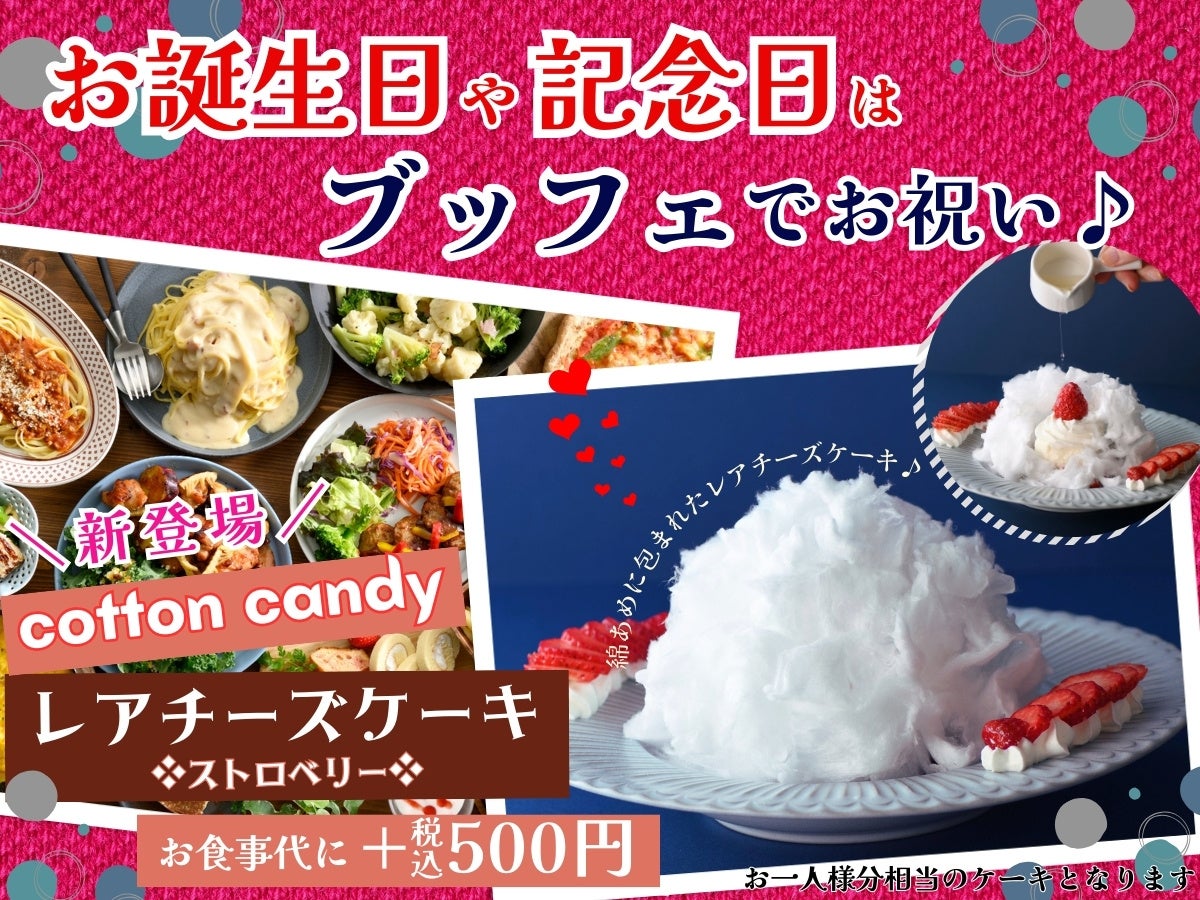 【食べ放題で特別な日をお祝い♪】バラエティー豊かな食べ放題「ザ ブッフェ 富山大和」にて『楽しい♪美味しい♪』ムービージェニックなサプライズケーキ『コットンキャンディー レアチーズケーキ』が新登場!