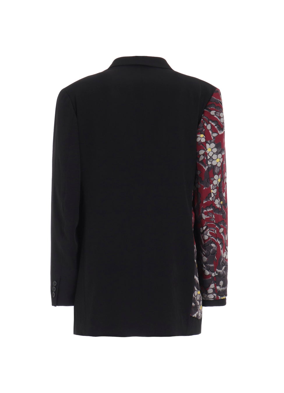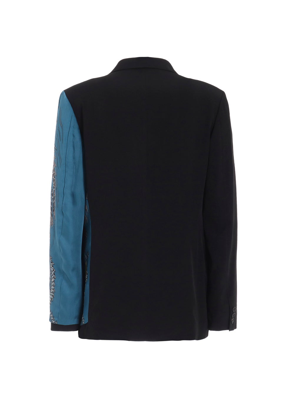 ジャケットは、『龍が如く』に登場する桐生一馬の「応龍」と、真島吾朗の「般若」の刺青柄を半身頃と袖に柄合わせをして配置し、定番素材のトリアセテート・ポリエステルの光沢のあるタキシード生地で仕立てました。
